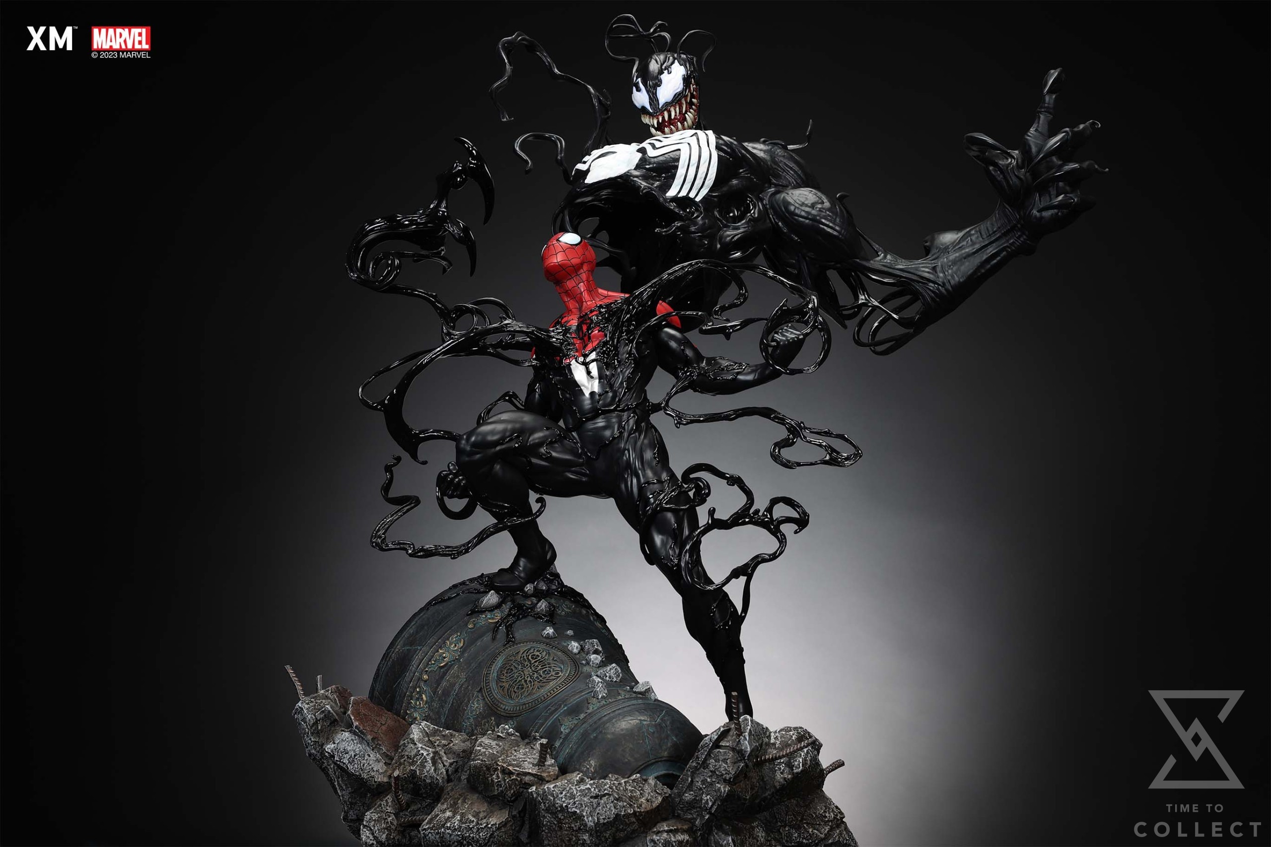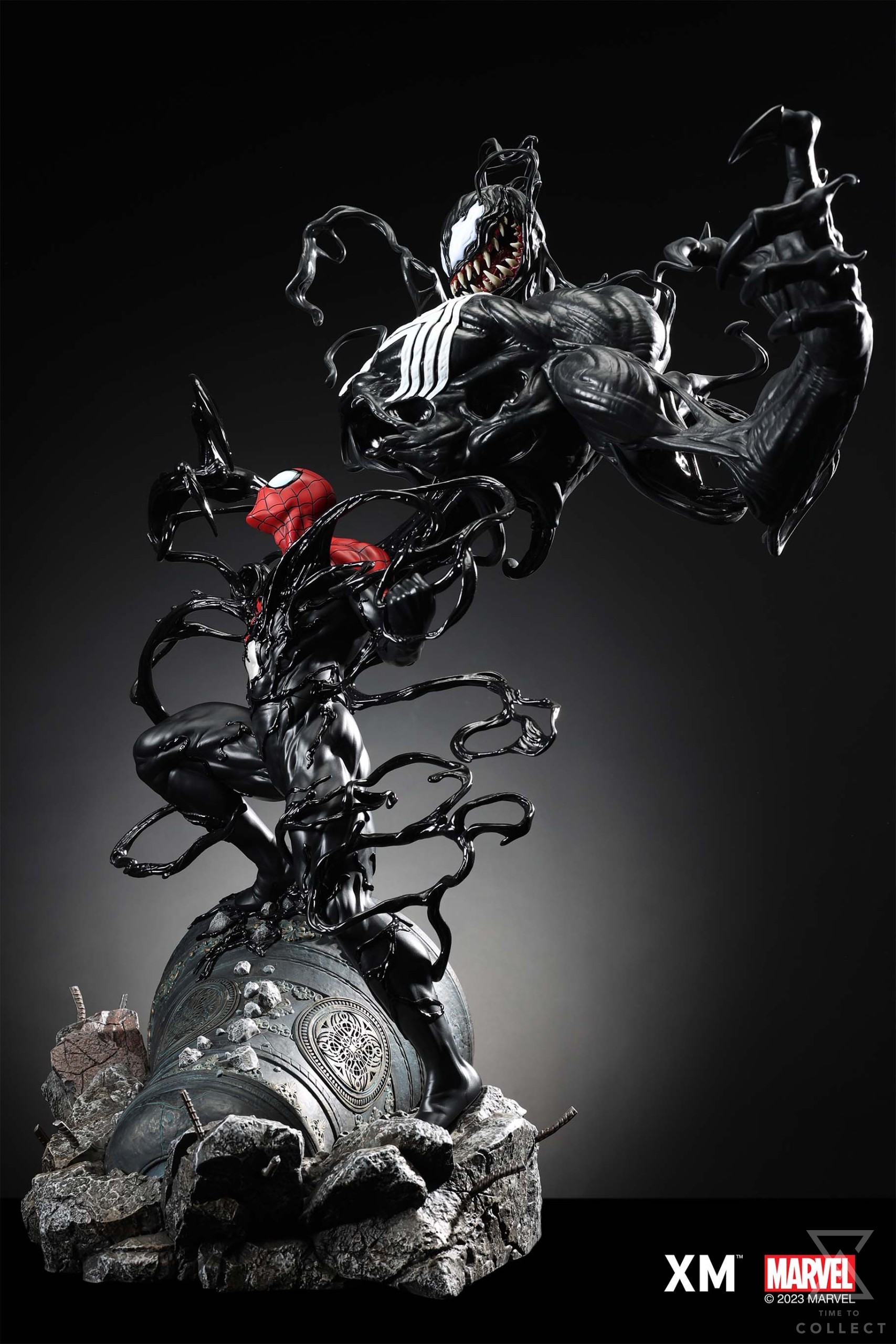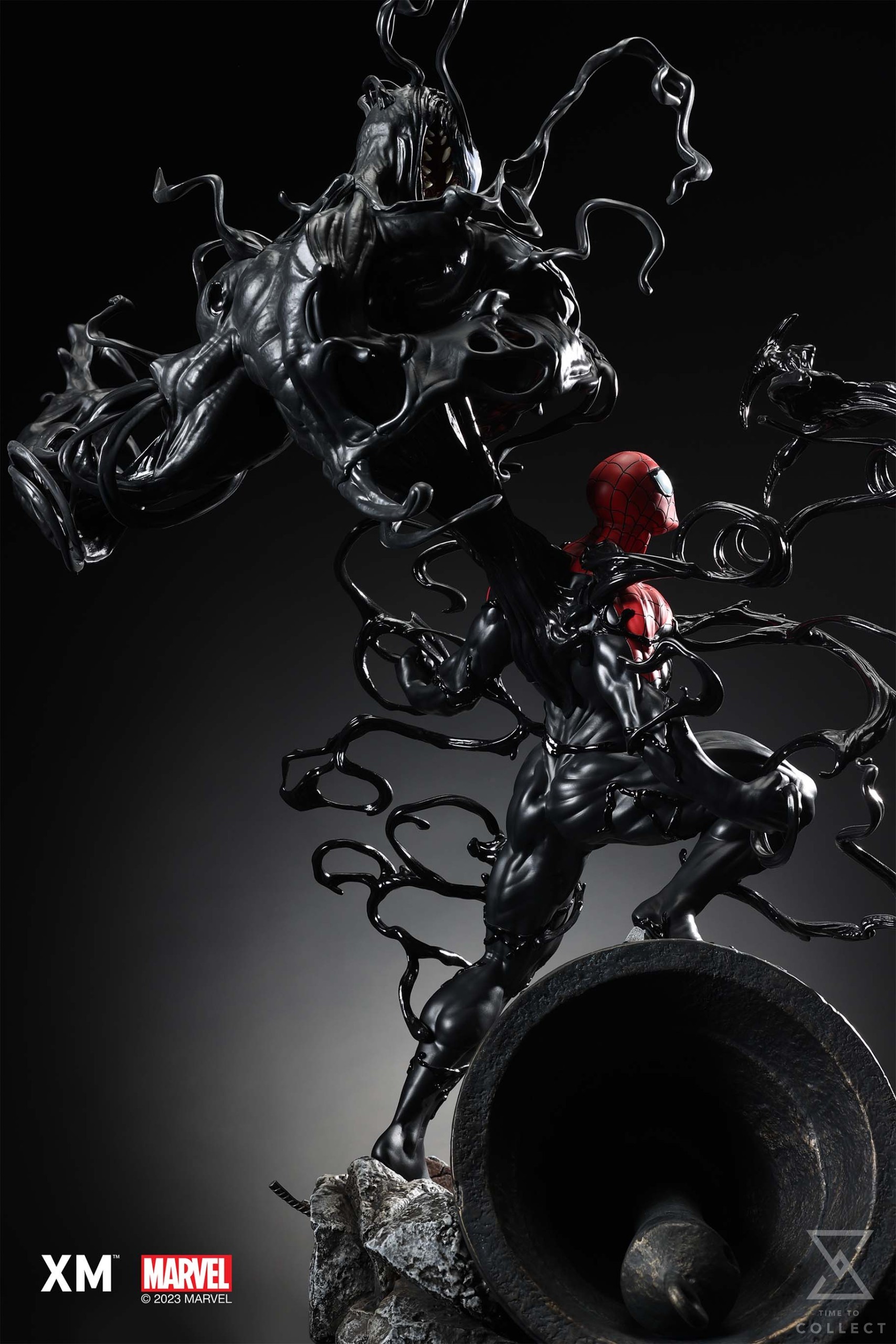 - Highly detailed sculpt featuring Spider-Man standing atop a bell base with Venom Symbiote