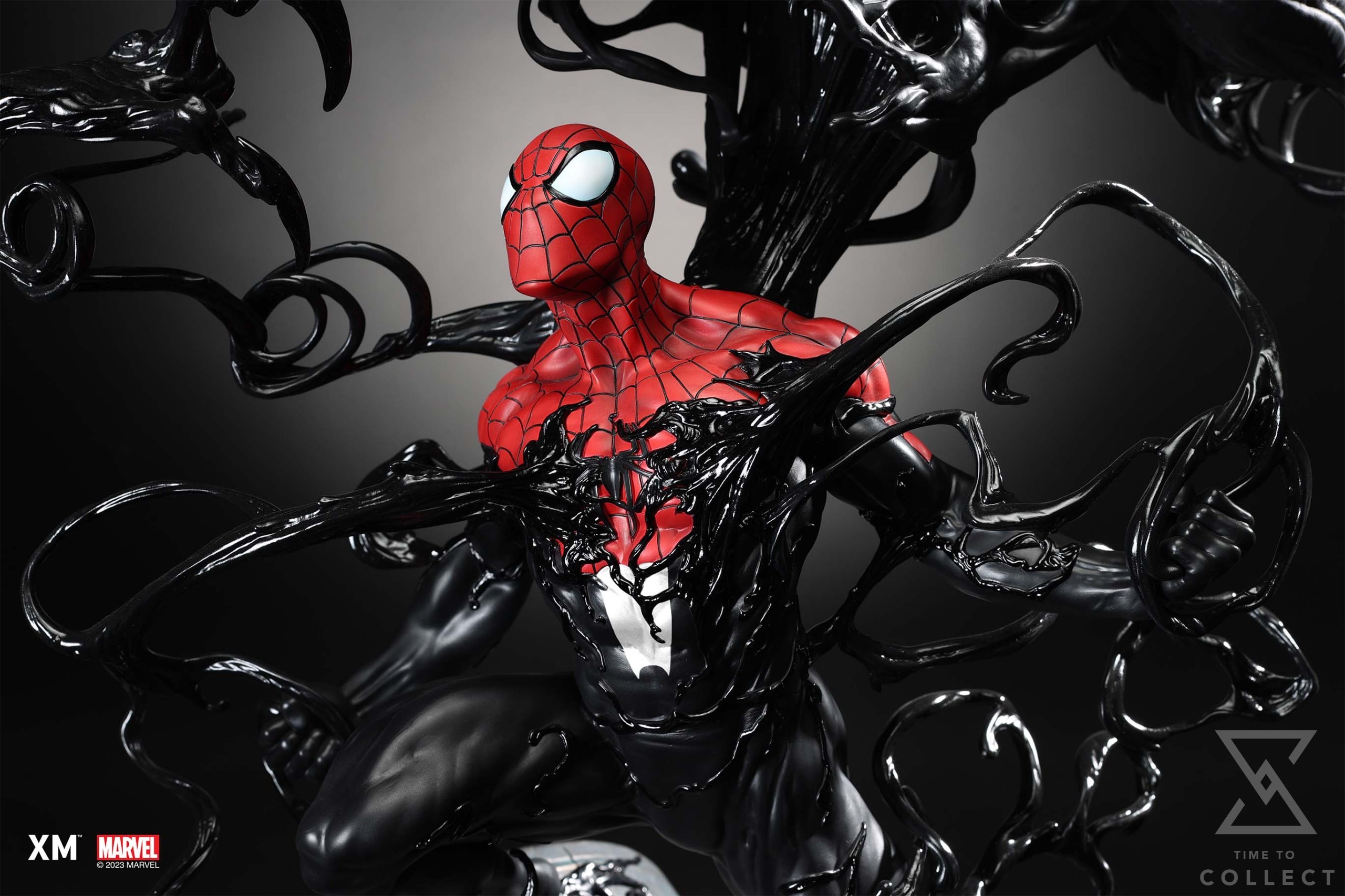 XM Studios is excited to present our next 1/4 scale MARVEL Premium Collectibles series statue, Symbiote (Transformation)! Each painstakingly handcrafted statue is individually hand-painted with XM’s famous quality finish, and comes in a bold, dynamic, and story-laden style. Spider-Man is seen half bonded with Venom as the symbiote extends from him, breaking into a maniacal grin. Spider-Man stands one foot atop a weathered fallen bell as he gripped the tendrils, while Venom’s tendrils slither and manifest into a claw on the left and short blades on the right. The fluidity and amorphous state of the symbiote are artfully sculpted and exhibited in this piece. This statue collectible captures the struggle between Spider-Man and Venom symbiote. Who will emerge victorious?