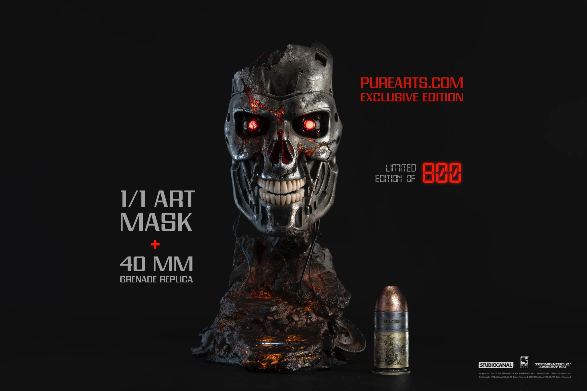 PureArts is proud to present the 1/1 scale T-800 Battle Damaged Edition Art Mask from Terminator 2: Judgement Day.