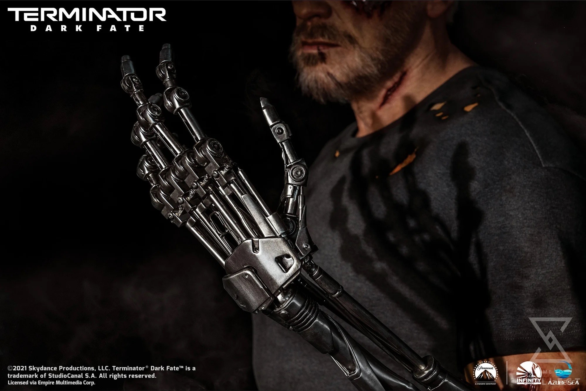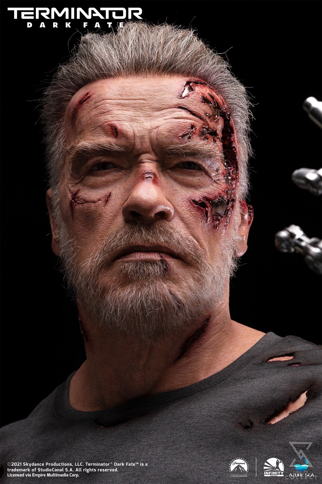 The final chapter of the Terminator. In the story of Terminator: Dark Fate, the “T-800” lost its target after completing his sole mission. Trapped in time, he lives in seclusion and learns what it is like to be a real human. Over the course of 35 years, the character has evolved from a ruthless machine (1984) to a loyal companion (1991) to a humane, awakened android (2018). “?? ???? ??? ?????????“. Terminator: Dark Fate is the finale of James Cameron’s Terminator series. From “I’ll be back” to “I won’t be back”, Schwarzenegger’s “T-800” legend ends here. In collaboration with Azure Sea, Infinity Studio pays our tribute to the legend with this Terminator: Dark Fate T-800 1/1 life-size bust!