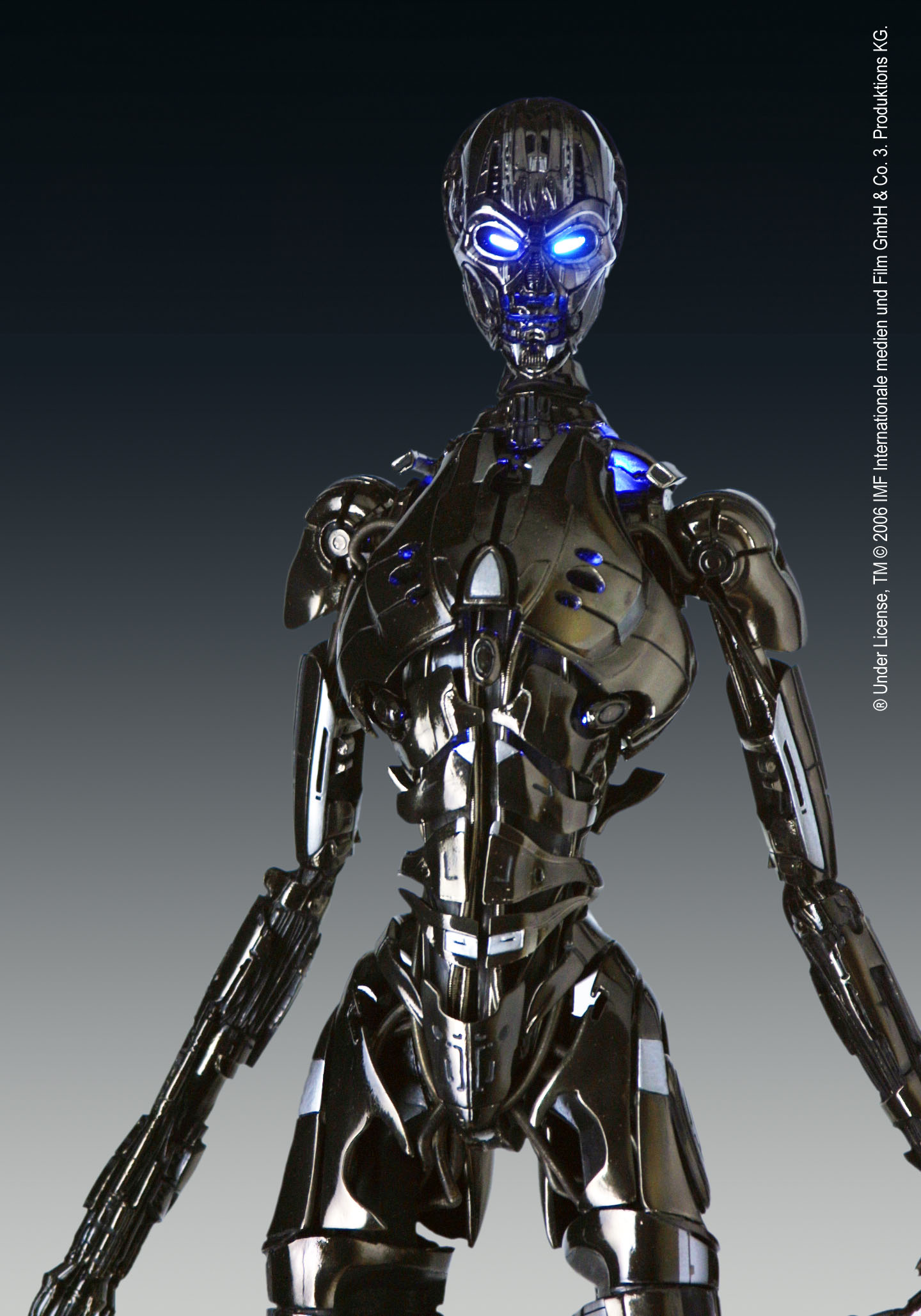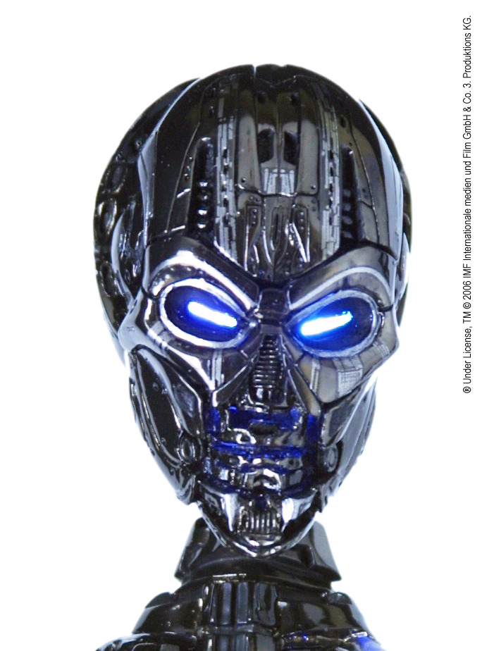 - Blue LED lights incorporated throughout the body to simulate the T-X’s glow.