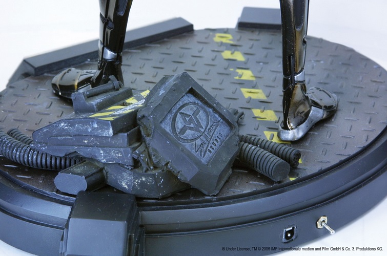 The 1:3 scale statue, cast in metal and constructed from polystone resin, is an exact replica of famed monstermaker Stan Winston’s unforgettable creation, and features a chilling light-up feature, illuminating the eyes, chest, and rear cranium of the T-X, with either a steady glow or an eerie rhythmic “pulse”. The T-X Cinemaquette is entirely chrome-plated and weighs over 23 pounds, and each T-X is accompanied by a certificate of authenticity signed by T-X designer Stan Winston.