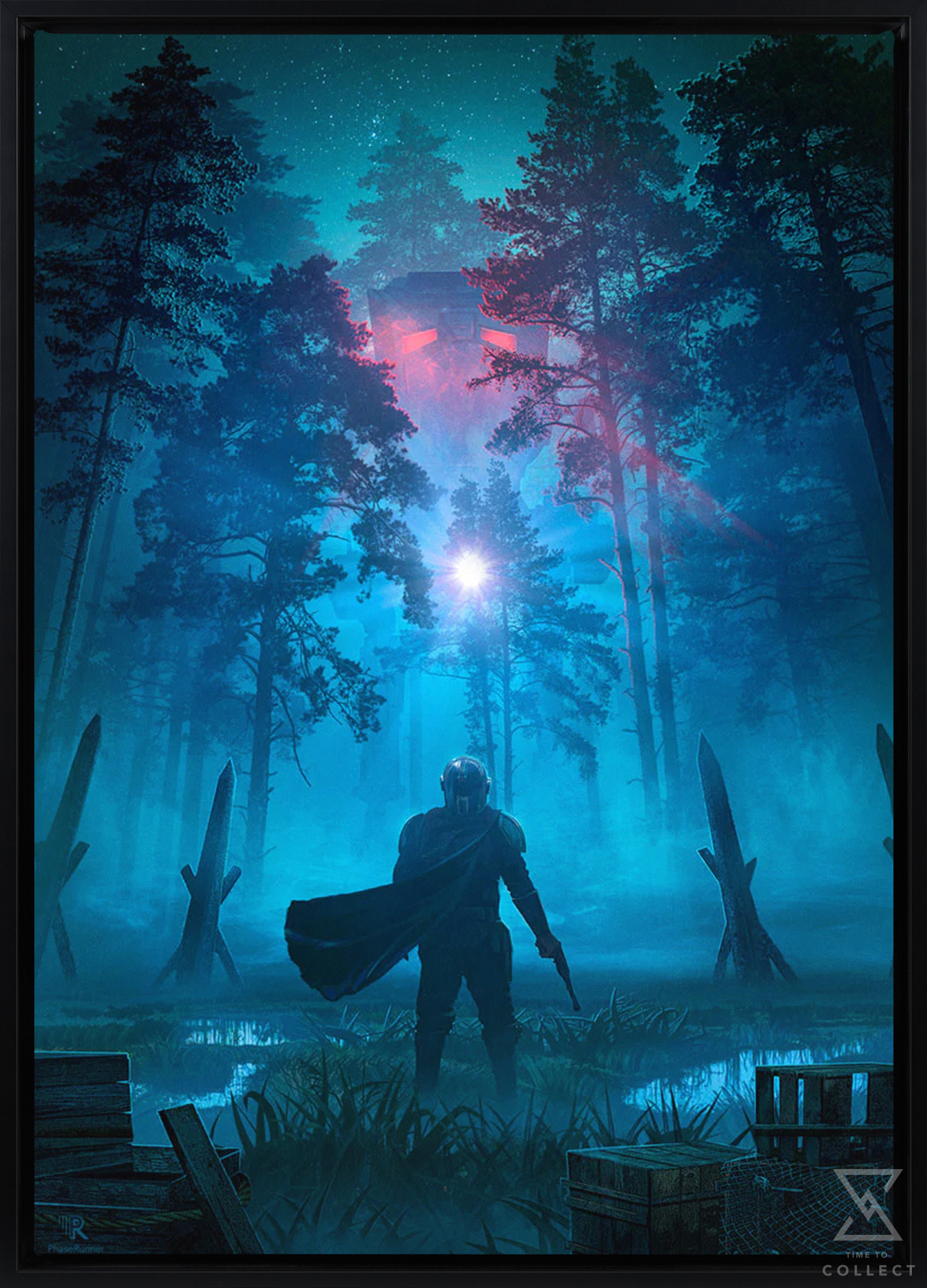 The Mandalorian takes on a mighty AT-ST in this exciting Star Wars artwork inspired by Star Wars: The Mandalorian. Each fully-framed canvas art print is hand-numbered out of 25 pieces and includes a Certificate of Authenticity.
