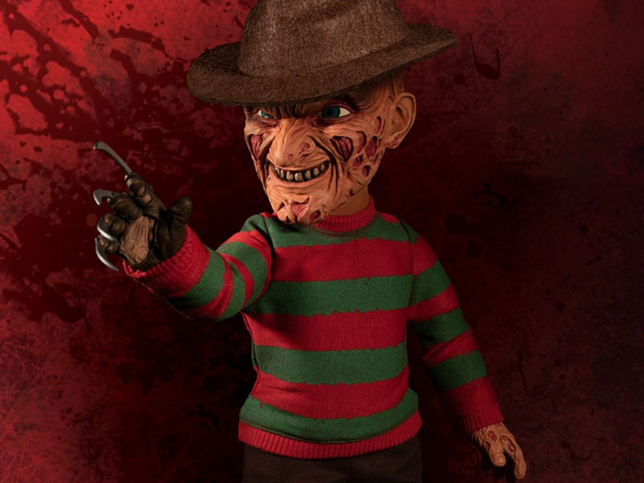The MDS Mega Scale Talking Freddy Krueger stands at a frightening 15” tall and says 5 nightmare-inducing phrases from the original films including “You think you was going to get away from me?!”