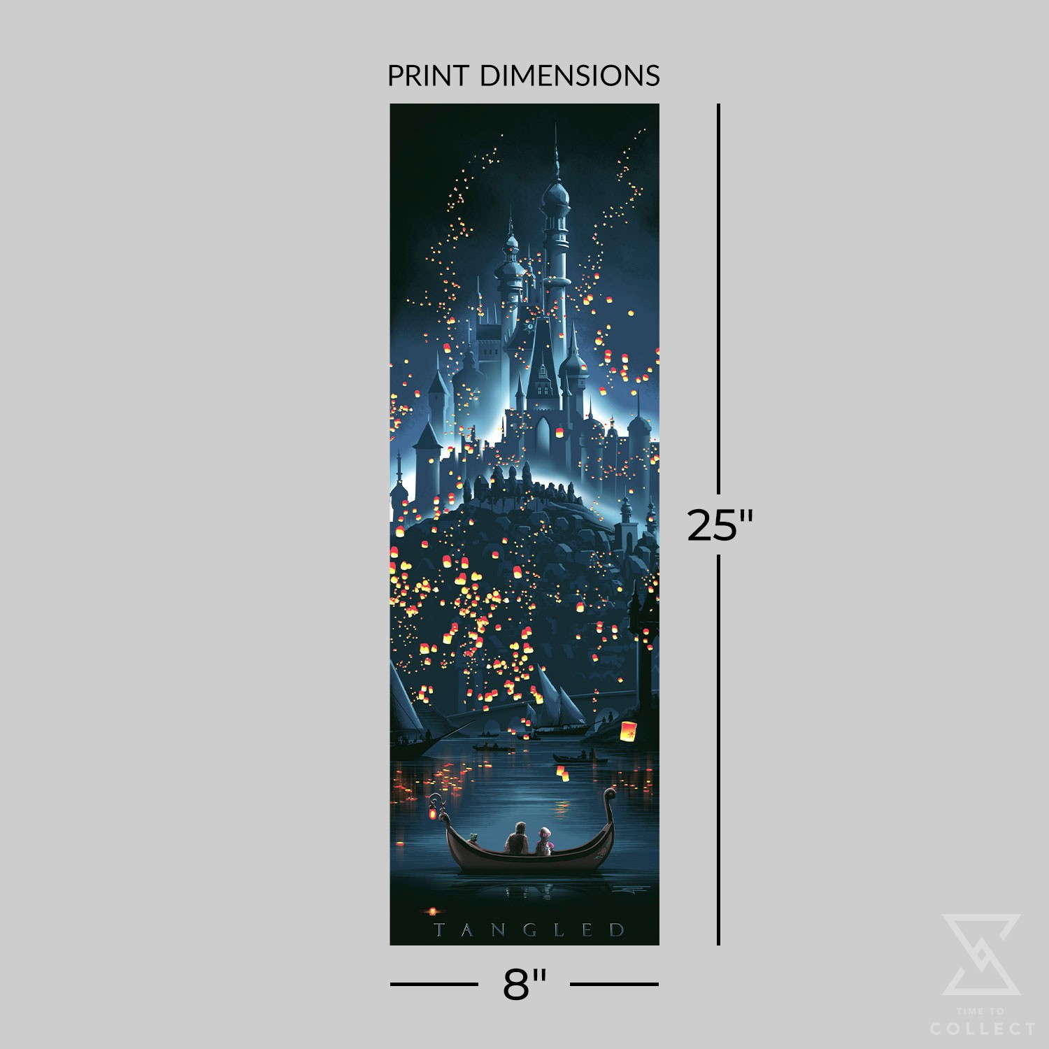 From Disney Fine Art’s Treasures on Canvas Collection, this limited-edition canvas artwork series by JC Richard focuses on the landscapes and monuments of Disney’s beloved animated films. Featuring Rapunzel and Flynn among a sea of guiding sky lanterns, this luminous Tangled print is destined to light up your Disney art collection! Each ready-to-hang gallery-wrapped canvas print includes a Certificate of Authenticity from a limited edition of 1500 pieces.