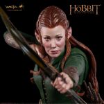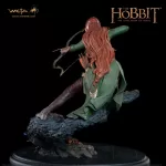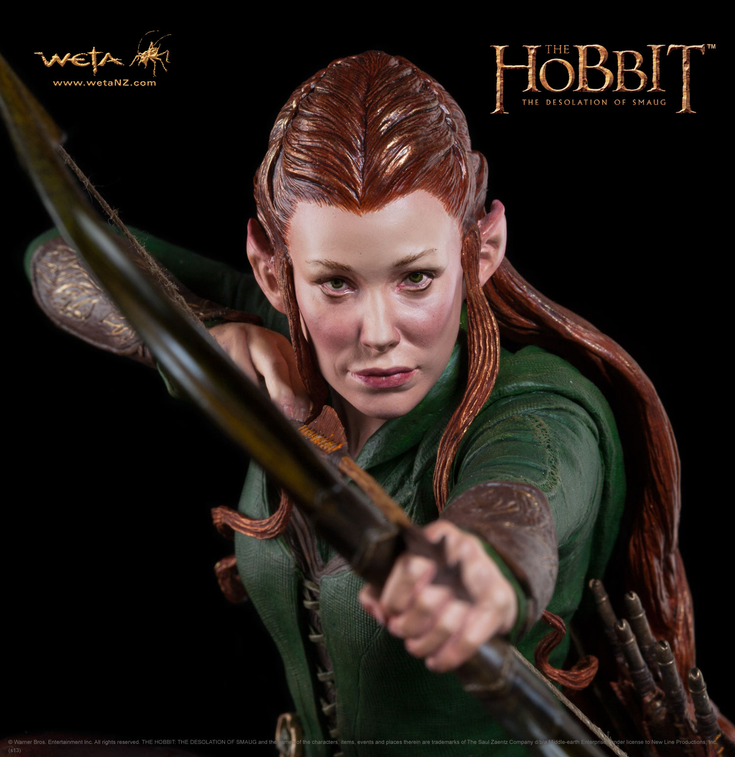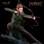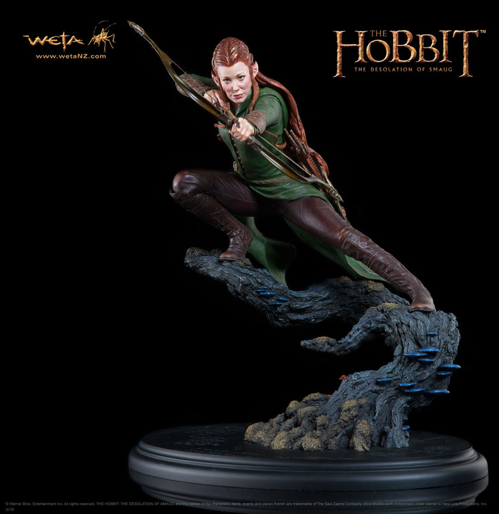 Like all her kind, Tauriel’s eyes are keen and she moves with the silent swiftness and agility of a cat through the twisting boughs of the forest, curved Silvan short bow in hand and barbed arrow drawn. The ancient wood has grown dangerous, even for Elves. Spiders and other, fouler things stalk its paths and a sickness has taken hold of the trees. Tauriel was sculpted by Weta Workshop sculptor Yasmin Khudari in the likeness of the character played by Evangeline Lilly in The Hobbit: The Desolation of Smaug.