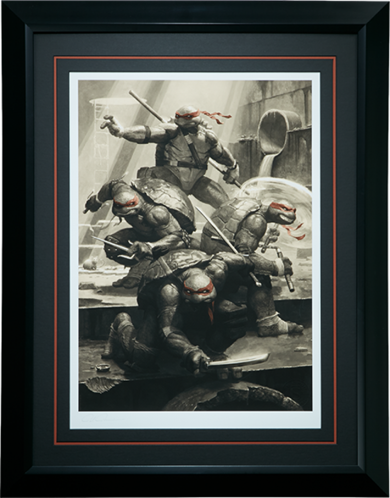 Sideshow is proud to present the officially licensed Teenage Mutant Ninja Turtles – Classic Variant Premium Art Print by Paolo Rivera. Created as the perfect companion piece to Sideshow’s popular new TMNT statue series this art print is hand signed by the artist and limited to just 125 pieces! This special sepia-toned variant of the Teenage Mutant Ninja Turtles Premium Art Print features the heroes in a half shell with aggressive expressions and their comics-inspired red bandanas.