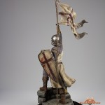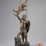 Imprisoned, tortured, and killed by the thousands, the Knights Templar were thought to have gone extinct over 700 years ago. However, the fire that burned in the hearts of these warriors would not be so easily extinguished. This 1:6 scale statue represents the eternal flame of the warriors known as the Templar Knights. Standing atop the bastion of a Templar keep, this knight proclaims victory over all of those who dare oppose him. Digitally sculpted and 3D printed, every detail is expertly represented on this statue. From the finely crafted armor of individual chain links to the stitching of the cross on his habit. For even more display possibilities, the head is switchable. It includes a head helmed with a great helm or heaume that incorporates a brass cross on the front across the eyes and bridge of the nose. An un-helmed head shouting his victory. And of course, the head of a warrior returned after 700 years in the grave. Each makes for a very impressive display and can be easily swapped out whenever you like.