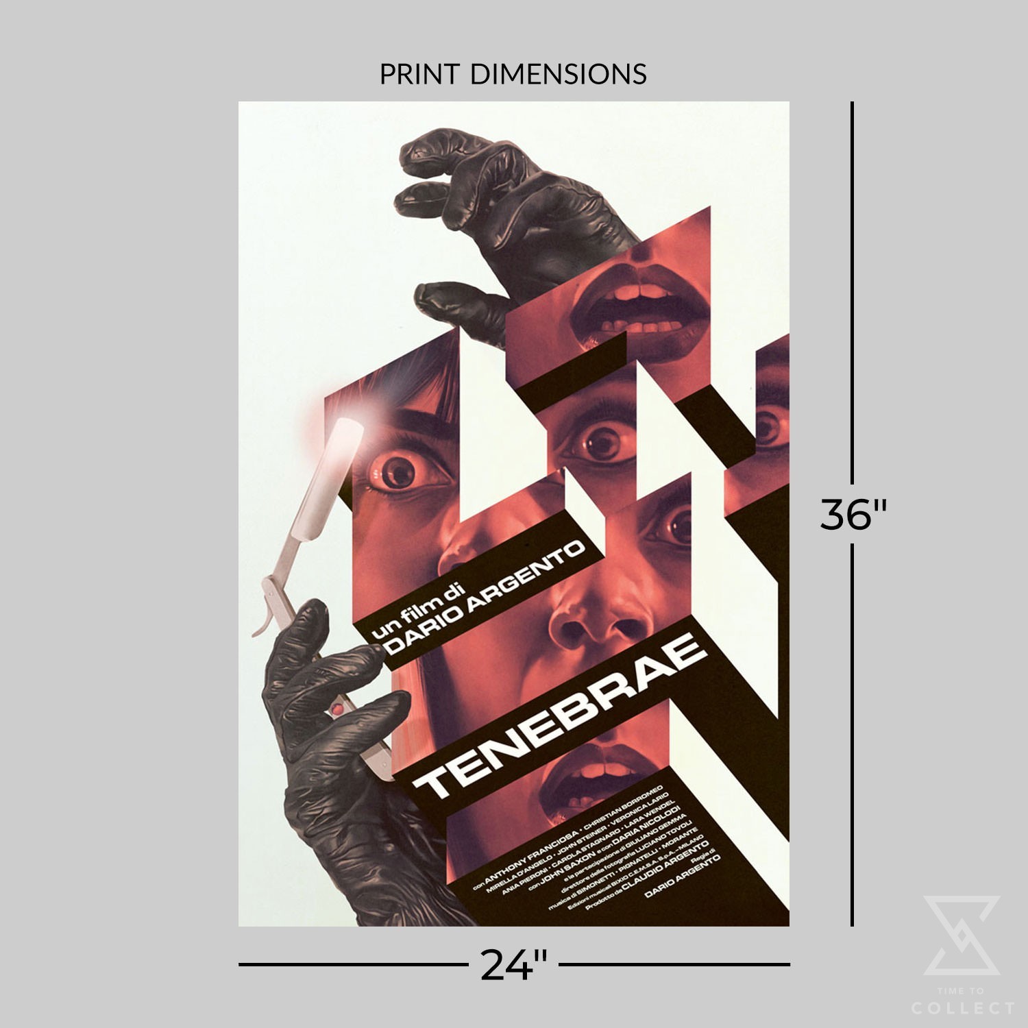 Among Dario Argento’s wide and varied catalogue of films, Tenebrae stands out for its remarkable cinematography and visual style. Ben Turner’s incredible new 24 x 36-inch movie poster captures this stylistic nature through its framing and architecture. Each fine art lithograph print is hand-numbered from a limited edition of 175 pieces, making this horror art a must-have for any cinephile’s collection.