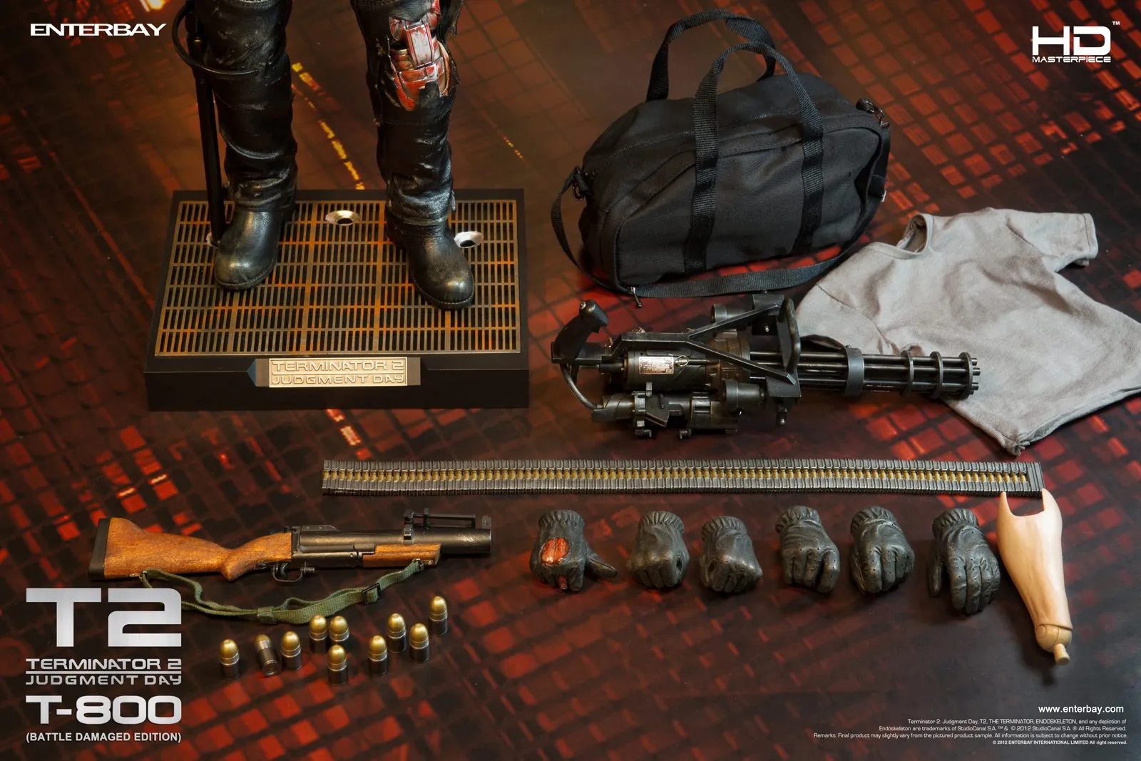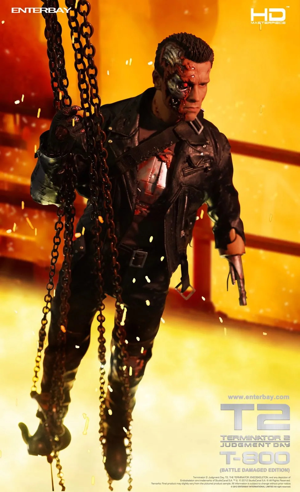 ENTERBAY is proud to present the T-800 (Battle Damaged Edition) HD Masterpiece quarter scale figurine from the movie Terminator 2: Judgment Day. The T-800 collectible is created based on the battle damaged Arnold Schwarzenegger as T-800 in the movie, featuring with the newly developed head sculpts with lit-up LED eyeball, advanced HD masterpiece muscular body, movie accurate battle damaged costume, as well as other detailed weapons and accessories.