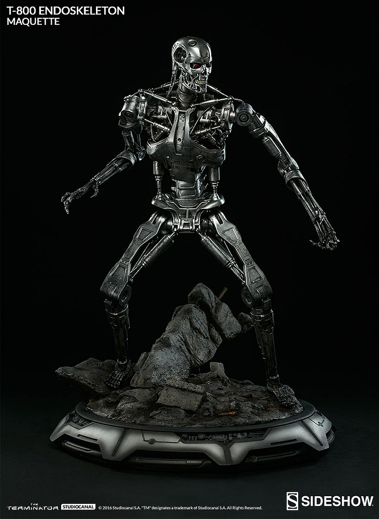 Sideshow’s Terminator Endoskeleton Maquette is a painstakingly detailed recreation of the iconic T-800, the Terminator that first struck fear into would-be freedom fighters everywhere. Our version features polystone and premium grade ABS plastic elements in order to maintain the crisp details that one would expect to find in a machine crafted by machines. This stunning maquette is made up of over 100 pieces.