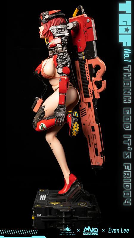 The TGIF collection is designed by Evan Lee in collaboration with Queen Studios in partnership with Madology. The new character series is based on Evan Lee’s vivid dystopian cyberpunk artwork and dystopian universe. Queen Studios has then teamed up with MADOLOGY to bring these incredible characters to life in the form of limited edition collectible statues. Discover the incredible collection now for a limited time!