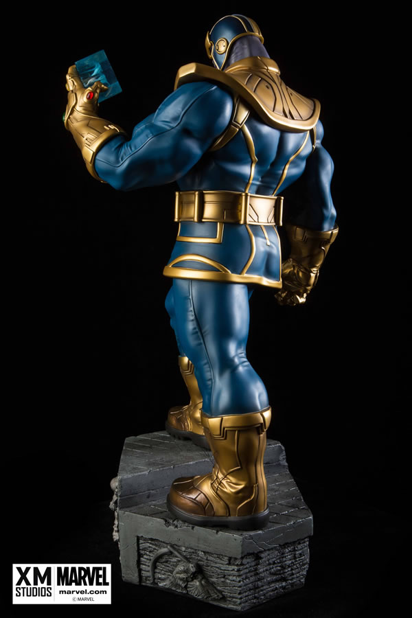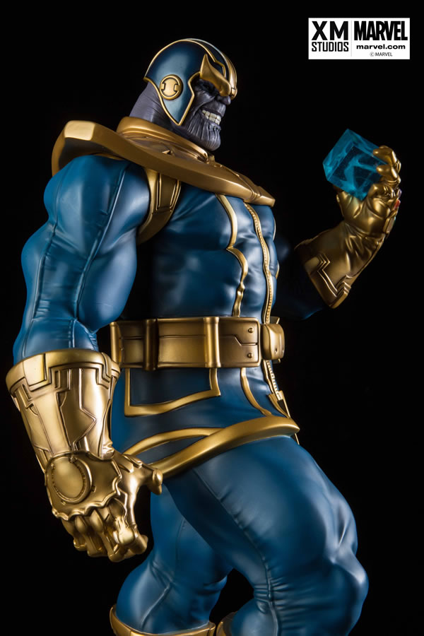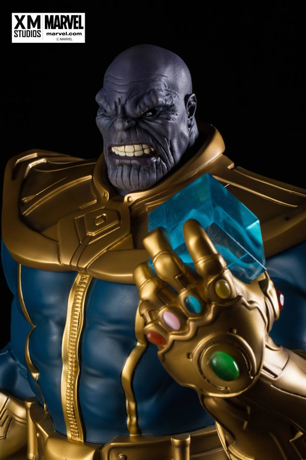 XM Studios is excited to present our next Marvel Premium Collectibles series statue, Thanos ! The Mad Titan Thanos, consumed with the concept of Death and in one of Marvel’s most popular story arcs, wielded the infinity gauntlet and cosmic cube making him an omnipotent being. The amazingly detailed 1:4 scale cold-cast porcelain each painstakingly handcrafted statue stands at approximately 26 inches tall and every piece individually hand-painted with the highest possible quality finish. Featuring 3 interchangeable heads, 3 sets of left and right arms bearing the infinity gauntlet, cosmic cube and helmet, the options of displaying this omnipotent behemoth is endless!