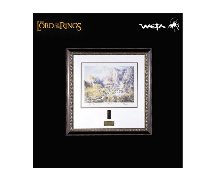 Lee’s creative leadership made a cinematic vision of Middle-earth that was full of wonder, and yet, to the fans of the written word, so intensely familiar that it felt like a homecoming.Through a unique arrangement with Peter Jackson, it is now possible to own a piece of cinematic history. Sideshow / Weta Collectibles is proudto offer a Limited Edition Rivendell Lithograph & Film Strip Collectible. This piece features the actual conceptual art of Rivendell created by Alan Lee. The original watercolor has been lovingly reproduced as an offset lithograph, printed on archival paper, and includes the original signatures of the three creative forces behind the making of The Lord of the Rings film trilogy: director Peter Jackson, two-time Academy Award(R) winner Richard Taylor, and illustrator Alan Lee.