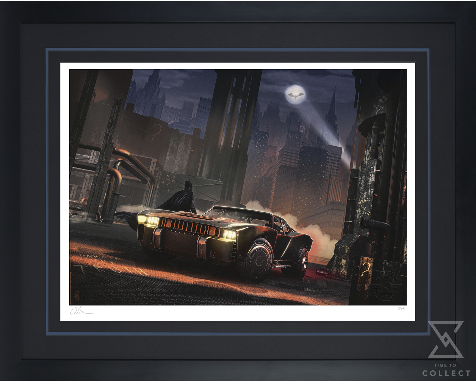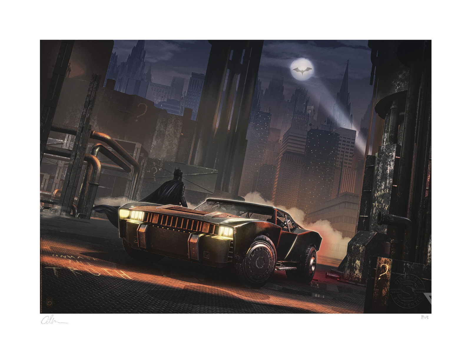 This DC Comics collectible brings the tense and hopeful atmosphere of Matt Reeves’ The Batman (2022) into fine art form. Available as an unframed fine art giclée print or in a custom framed presentation, each The Batman Fine Art Print features an authorized, automated artist signature and an embossed Seal of Authenticity as part of the limited edition of 400 pieces.