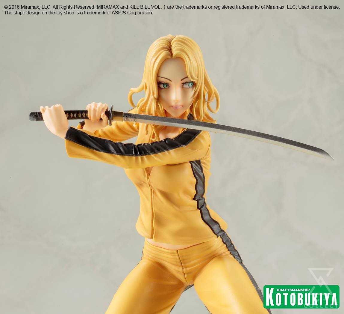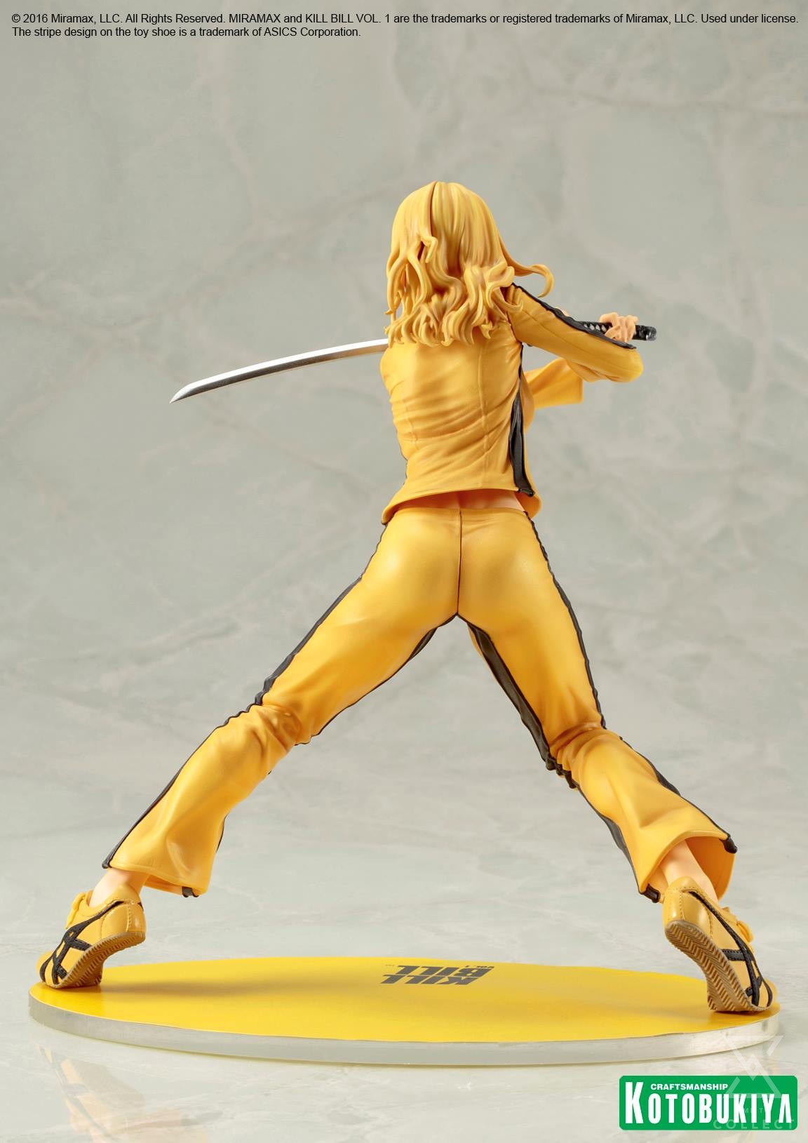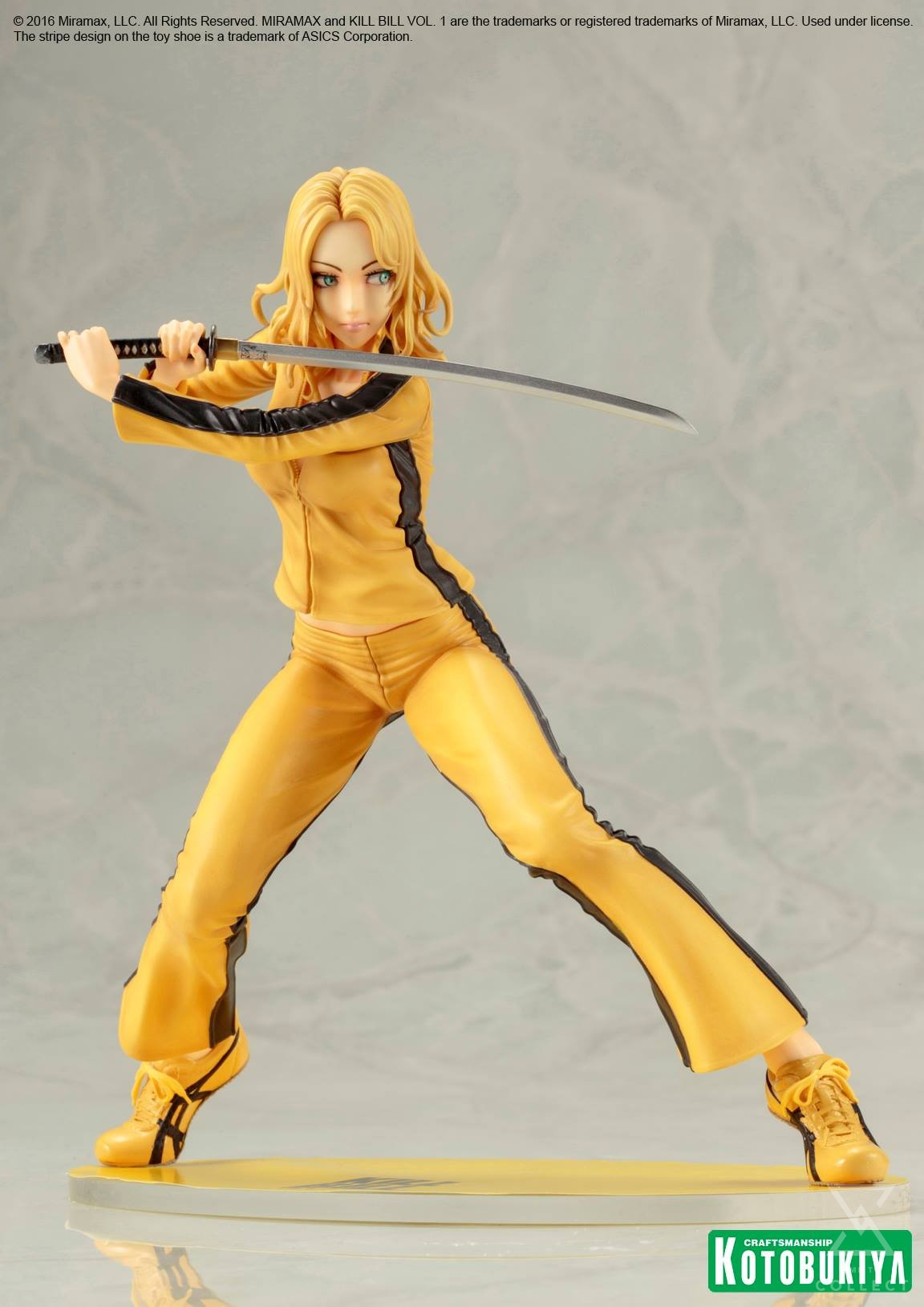 A Kotobukiya Japanese import! Kotobukiya’s Bishoujo lineup of great characters from cinema continues with none other than The Bride from Kill Bill. Wearing her yellow suit with black stripes and matching shoes, the Bride holds her specially forged katana. Based on a new character interpretation by master illustrator Shunya Yamashita. The Bride stands on a Kill Bill-themed base that matches the yellow and black of her outfit.