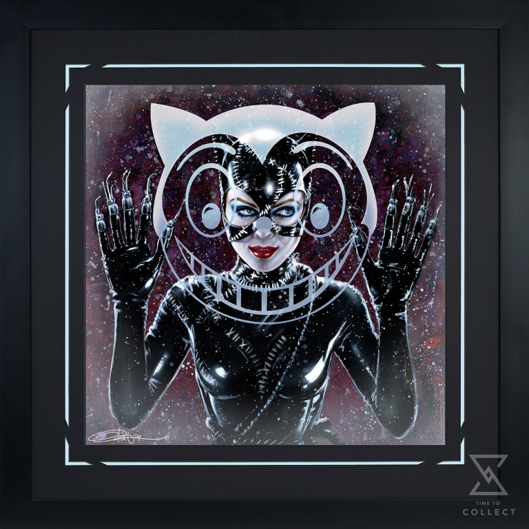 Inspired by Tim Burton’s Batman Returns (1992), this Catwoman art is now being offered for the first time in fine art form, presented as an unframed giclée with deckled hand-torn edges or in a custom framed format. Each The Catwoman Fine Art Print is hand-signed by Olivia herself and includes her official embossed Seal of Authenticity as well as a signed Certificate of Authenticity as a part of the limited edition of 300 pieces.