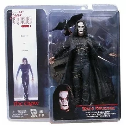 The film was a Cult Classic hit before it was even released, mainly due to the tragic death of Brandon Lee during filming. Brandon was poised to be the breakout star of the 90’s. Sadly, he followed his father’s legacy of dying tragically young just as he was set to break out. The figure features Eric Draven in one of his iconic poses, arms stretched out. It includes Eric wearing his trench coast, a Crow and Eric’s grave as a display base.