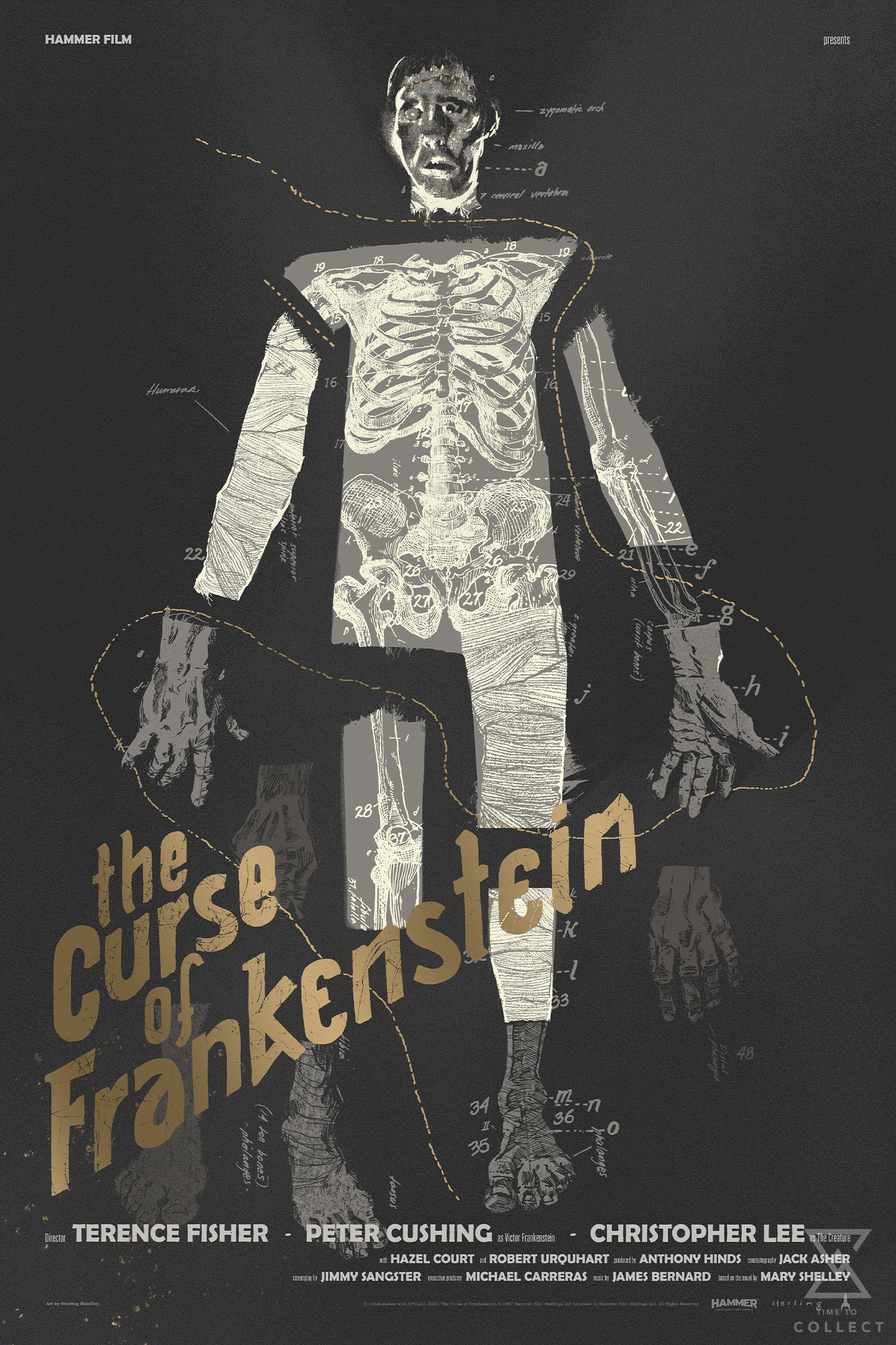 The Curse of Frankenstein Screenprint by Sterling Hundle – Gold Metallic Variant (Horror/Universal Monsters)