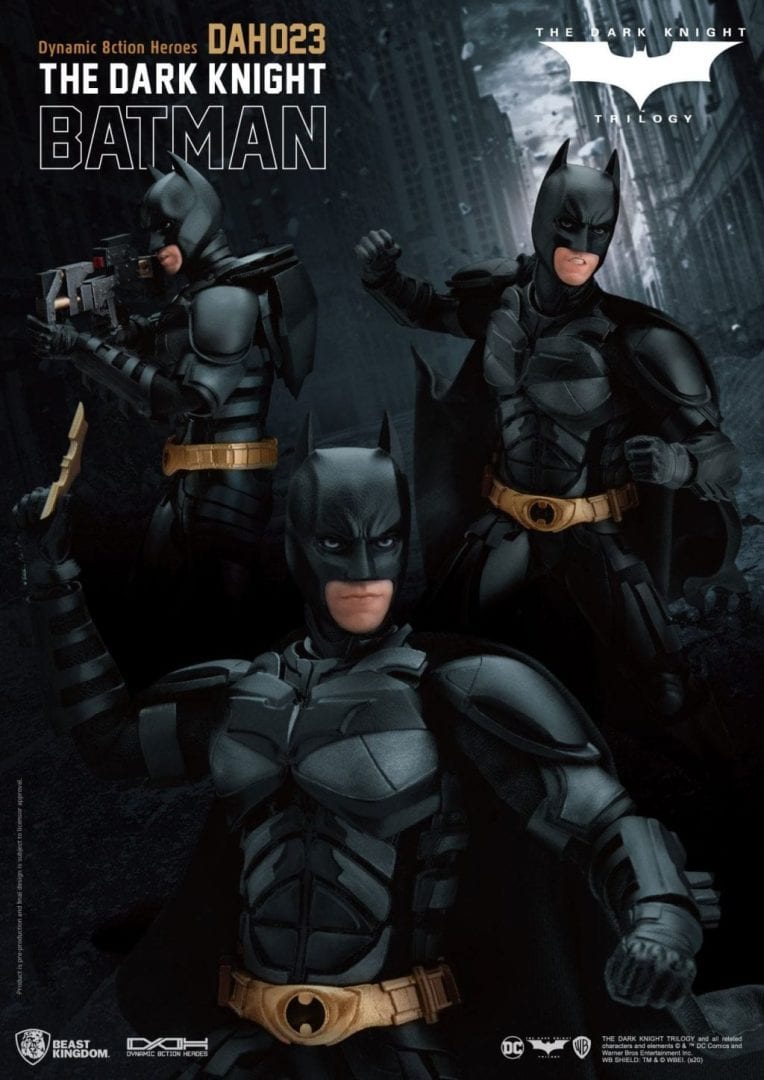 Beast Kingdom’s Entertainment Experience Brand is ready to introduce fans to the latest 1/9 scale, realistic action figure, The DAH (Dynamic 8ction Heroes) Dark Knight Batman. Based on the most popular suite from Christopher Nolan’s seminal trilogy, the suite is the one and only upgrade we see that is first introduced in the second movie. Based in part on a motorcycle suit, and originally designed in the story for tactical warfare, the armor is not only able to move more fluidly than before, it was the first time ever on-screen where Batman was able to fully move his head in the cowl, which finally got rid of the infamous body tilt seen in previous on-screen Batman’s.