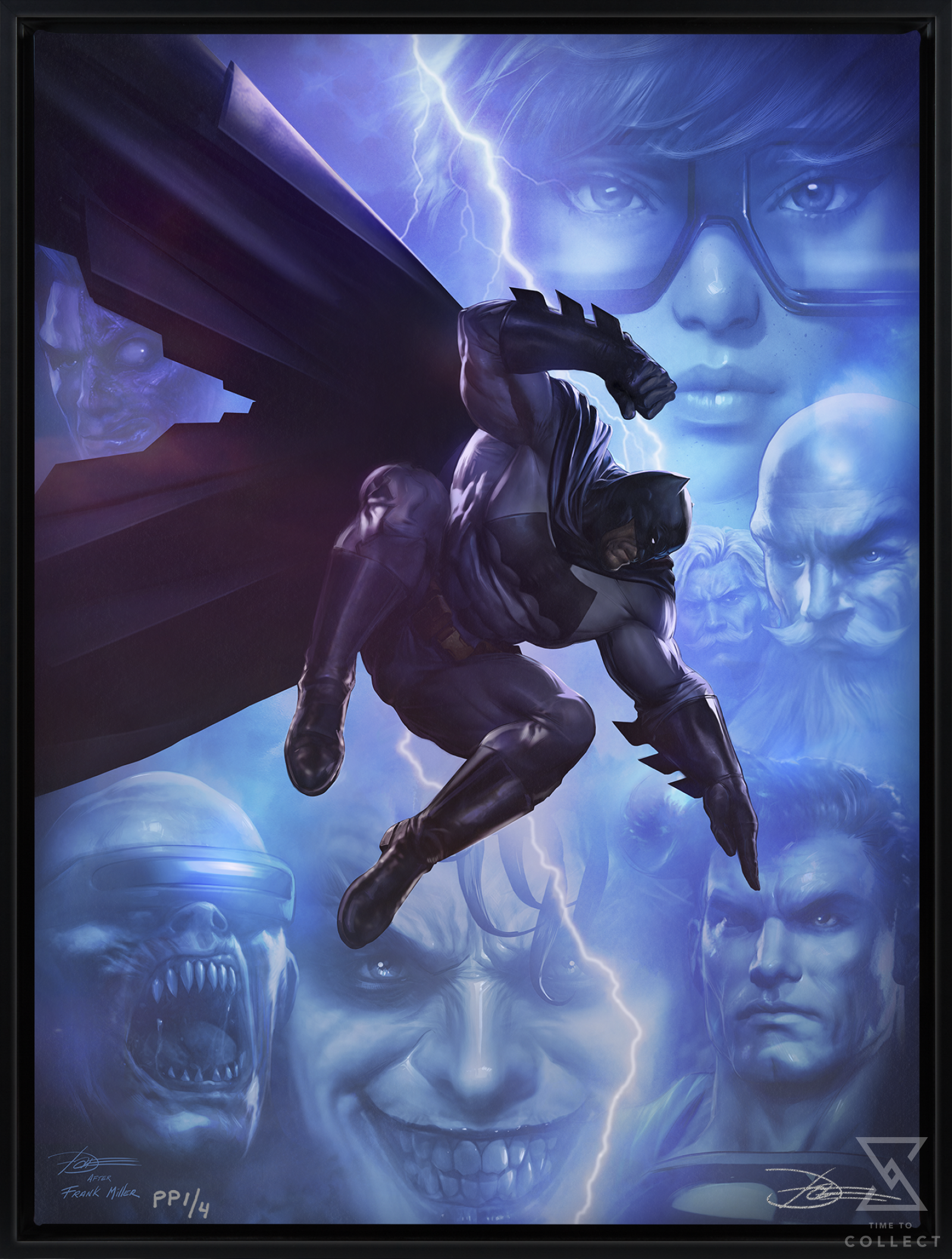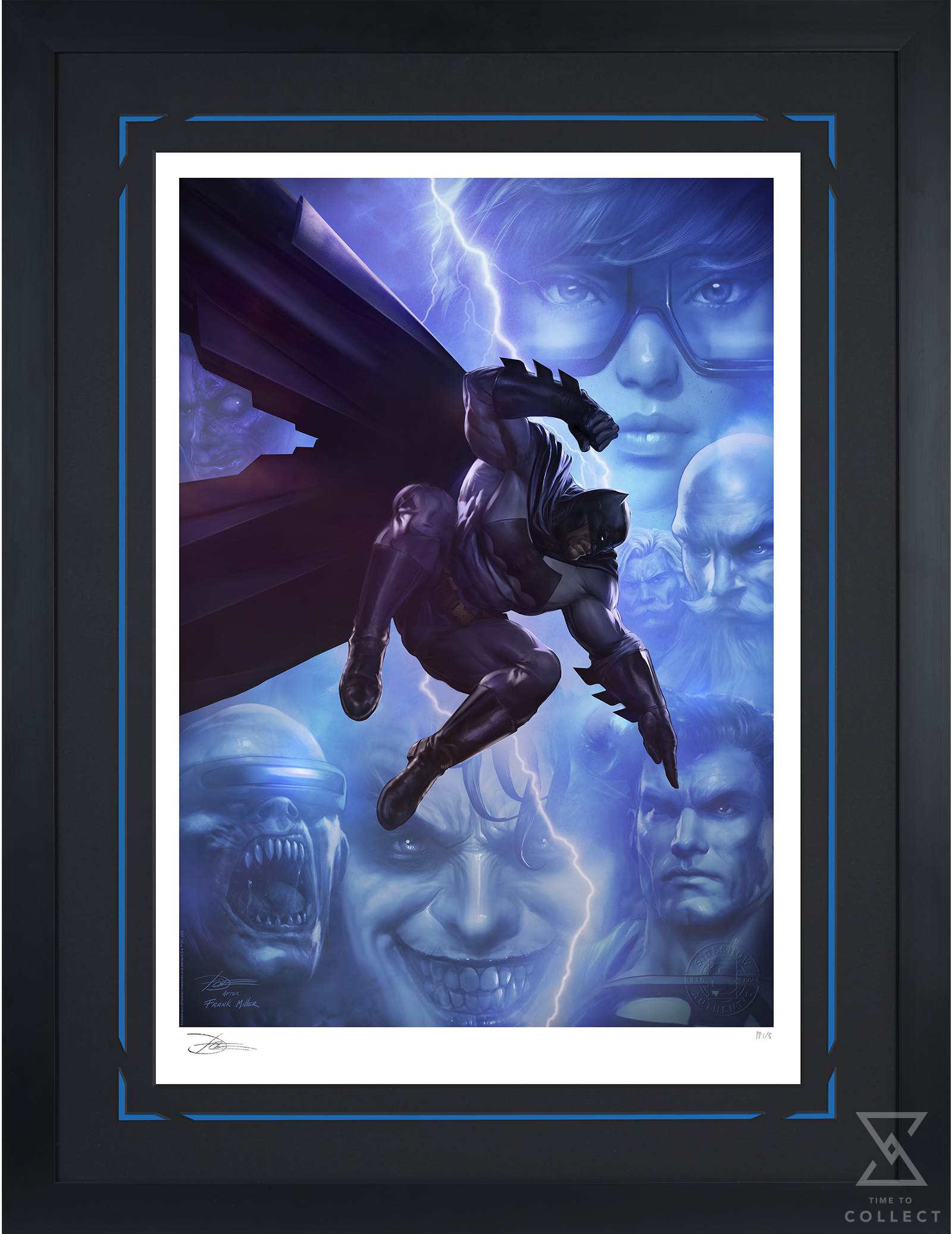 Each The Dark Knight Returns Fine Art Print features an authorized, automated artist signature and an embossed Seal of Authenticity as a part of the limited edition of 400 pieces. Available unframed or in a custom framed presentation, this Batman wall art is a must-have for fans looking to pay tribute to a celebrated DC Comics story.