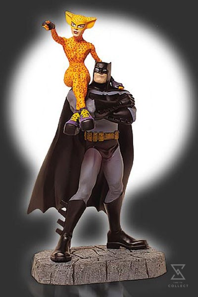 Frank Miller designed hand-painted, cold-cast porcelain statue, featuring Batman and sidekick Carrie “Catgirl” Kelly. Measures approximately 13.25″ tall.