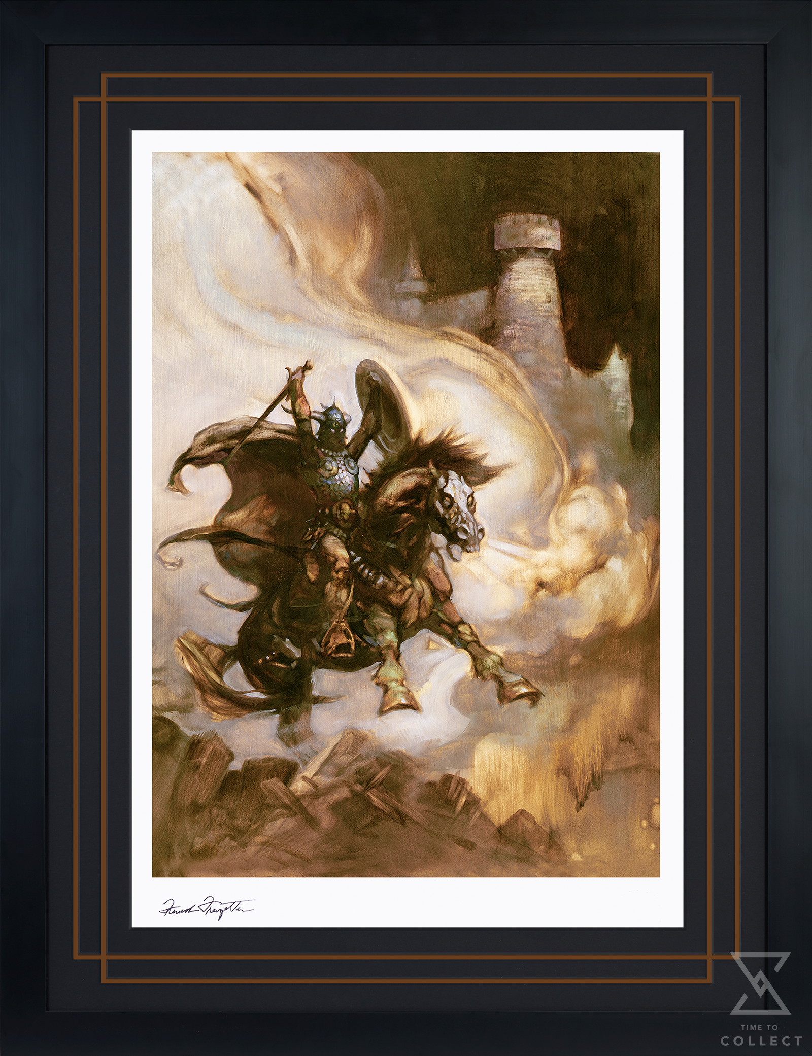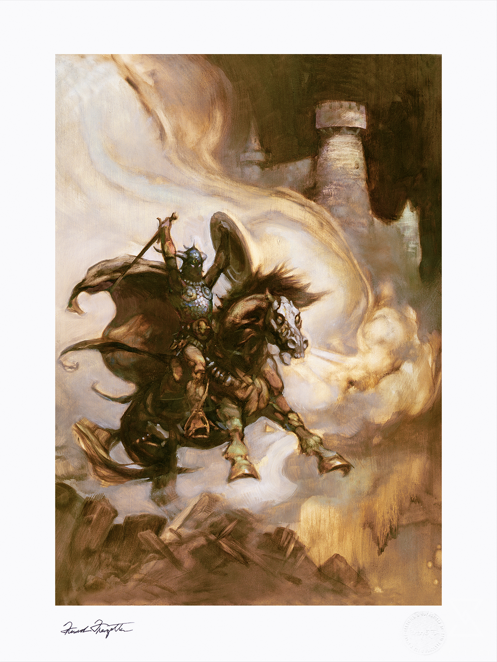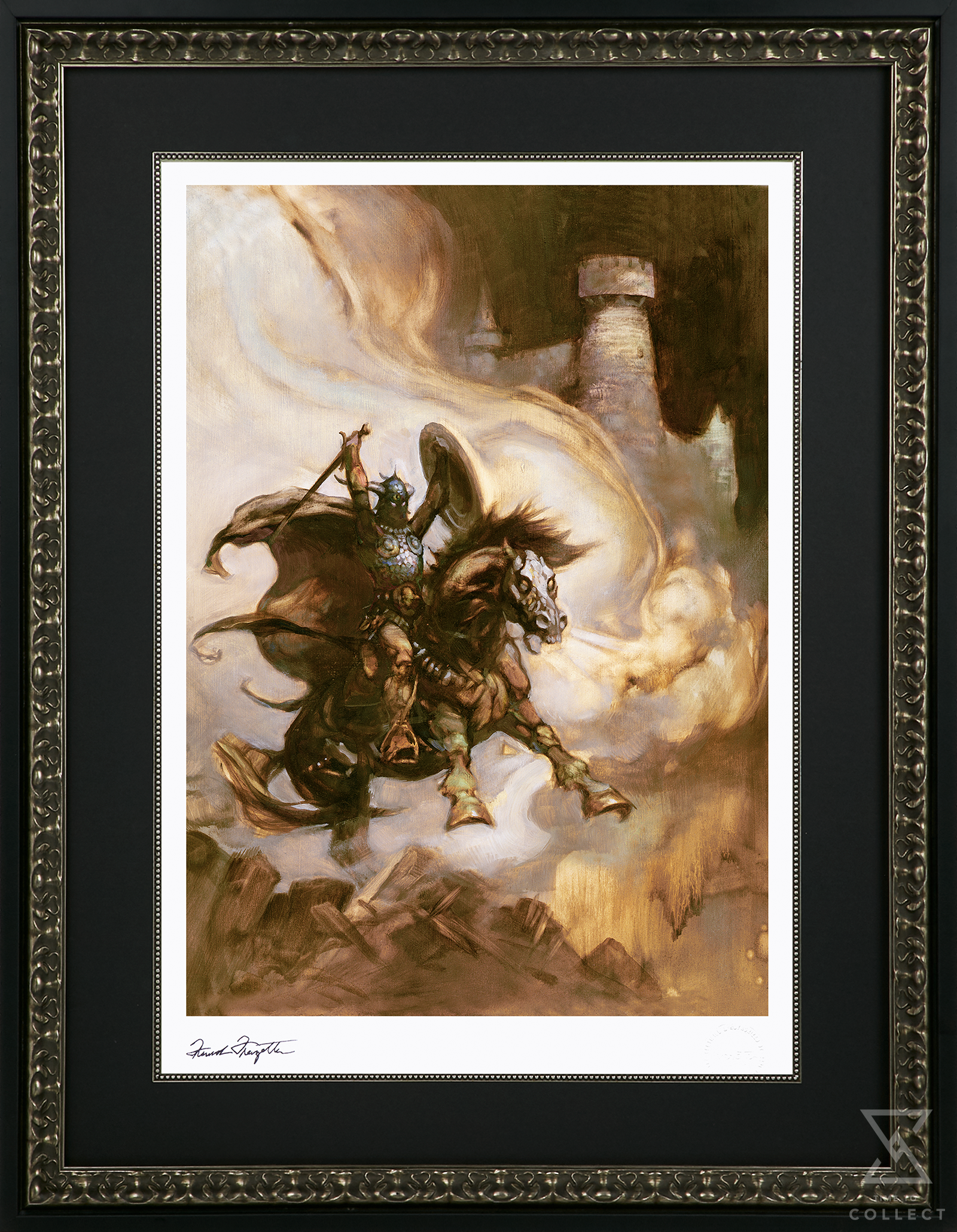 - Hand stamped authorized signature of artist, Frank Frazetta