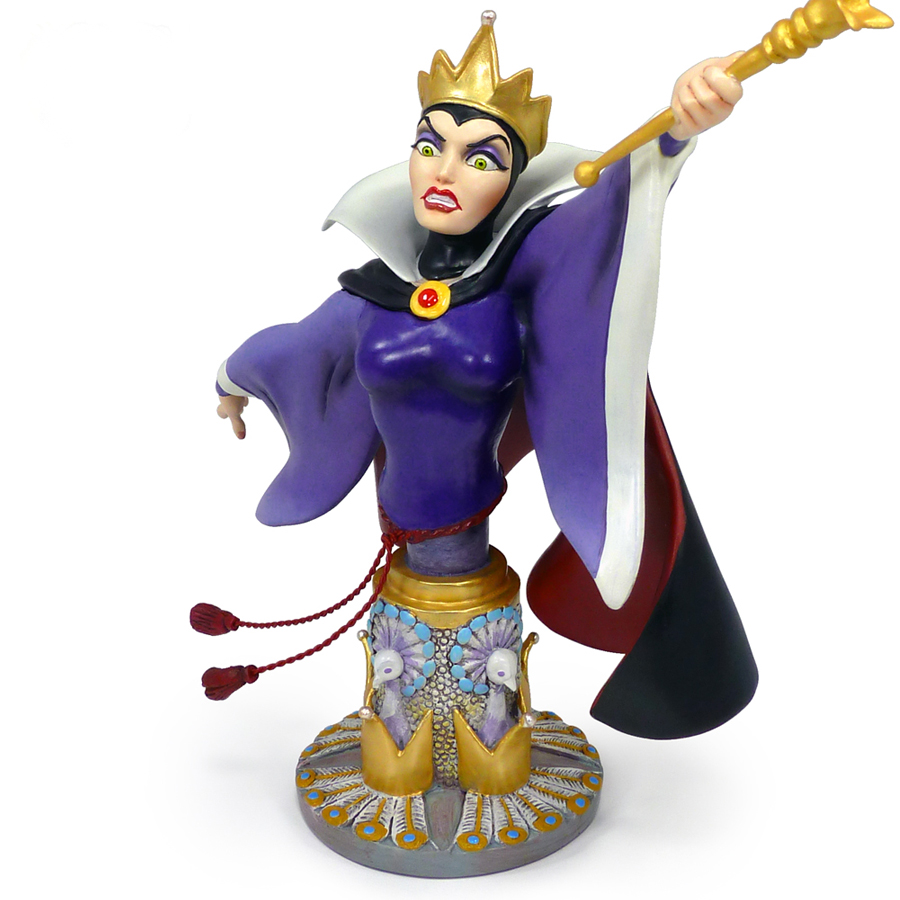 Darkly elegant in her flaring robes and billowing cape, the glamorous but oh-so-deadly Queen commands absolute adoration from all who gaze upon her. But when her step-daughter, the sweet and innocent Snow White, is proclaimed by the Magic Mirror to be the fairest one of all, the jealous Queen is cold fury bears bitter fruit, indeed.