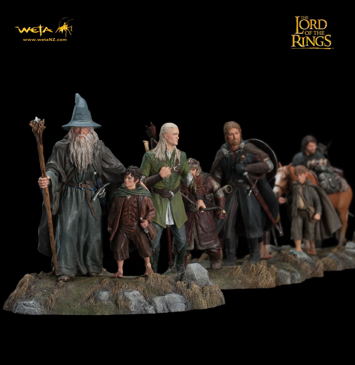 These three Sets have been created in response to ongoing collector requests for a diorama of the full Fellowship on their trek across Middle-earth. They have been sculpted at miniature scale (for those with limited shelf space) and are ideally suited to display alongside our iconic The Lord of the Rings environments like Rivendell and Bag End. The height from the bottom of the base to the tip of Gandalf’s hat is 14 cm. The base is 19 cm long and 13 cm wide. Frodo is just 7.5cm tall from his head to his toes. The Fellowship of the Ring has been sculpted, molded, modeled and painted by a wide team of artists from Weta Workshop, who helped create the Trilogy. It is then reproduced in polystone resin, the material of choice for fine art details. Note: We will be producing initial volumes in line with the volume of pre-orders received. So please pre-order now to ensure your Fellowship of the Ring is reserved for you.