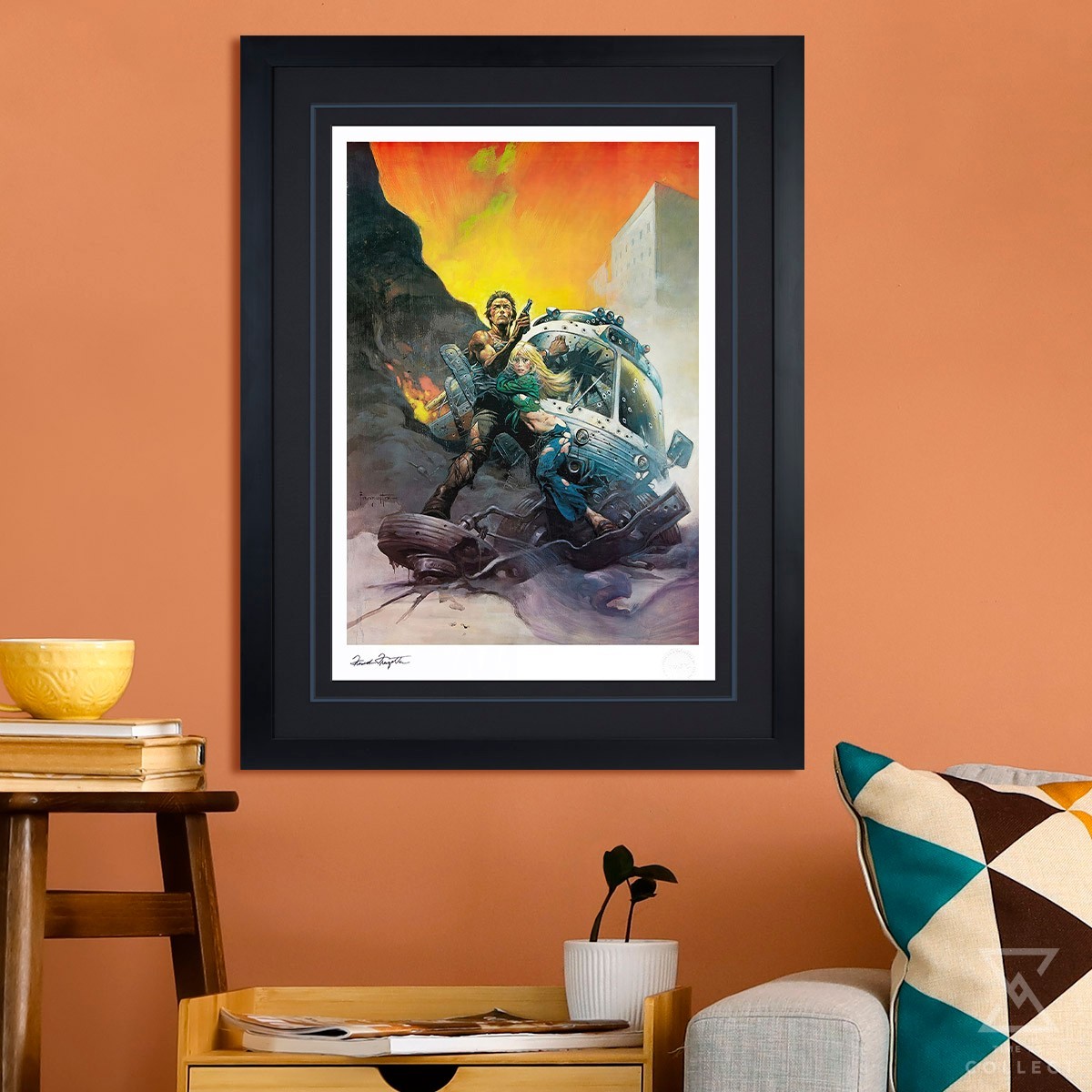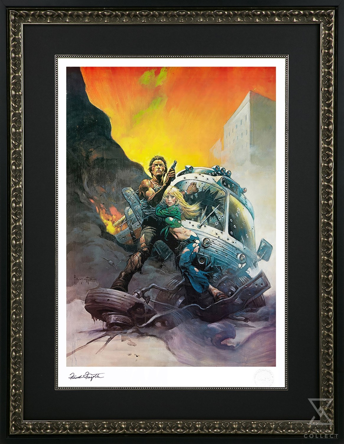 Originally created as a poster for The Gauntlet (1977), directed by and starring Clint Eastwood, this action-packed artwork is now available as an unframed giclée or in a custom black framed format. Each The Gauntlet Fine Art Print includes a Certificate of Authenticity and features an authorized, hand-stamped signature of Frank Frazetta and the official Frazetta Art Museum embossed Seal of Authenticity as part of the limited edition of 300 pieces. A portion of the proceeds from sales of The Gauntlet will benefit the Frazetta Art Museum’s preservation and exhibition of the artist’s essential works.