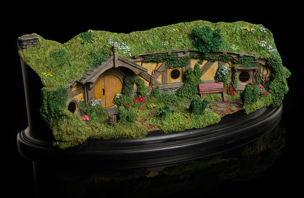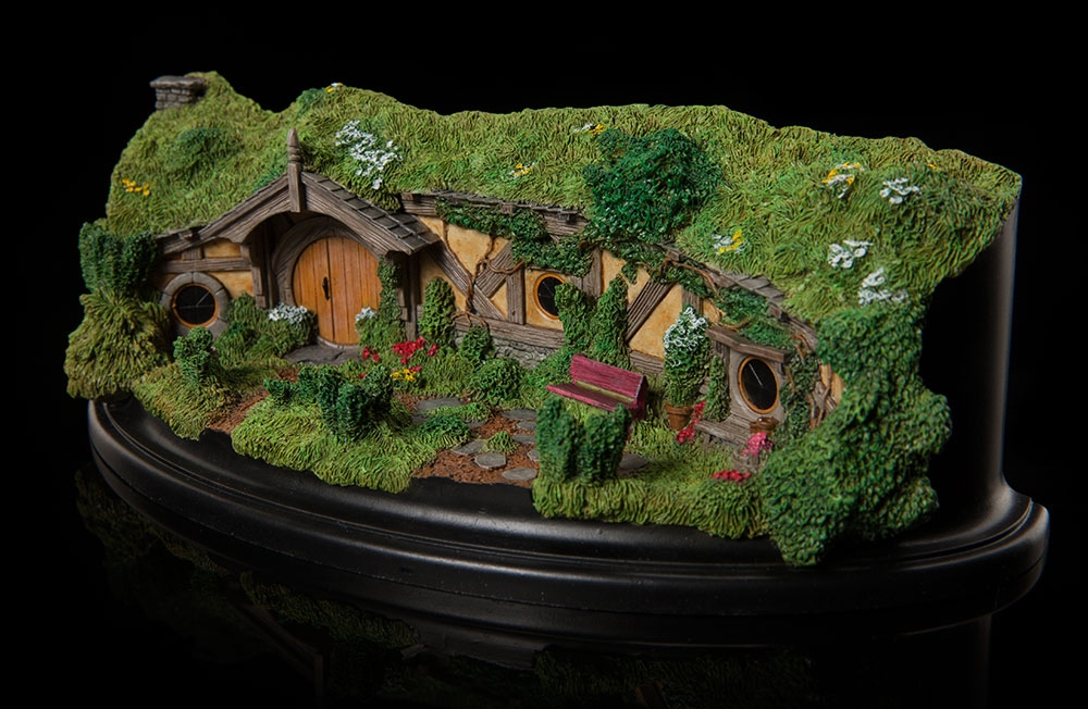 Among the largest of Hobbiton’s homes are the richly planted, sprawling smials overlooking the bountiful vegetable gardens. Each an individual dwelling, the Hobbit holes lend themselves splendidly to creative placement in your cabinet. With a flat back and shallow depth of only 55mm, they can be placed on mantles, cornices, shelves and in windows. Because of the relationship we have with all the production parts of the process, we have access to everything from concept drawings to set plans, which is really handy when making things like the Hobbit Holes.