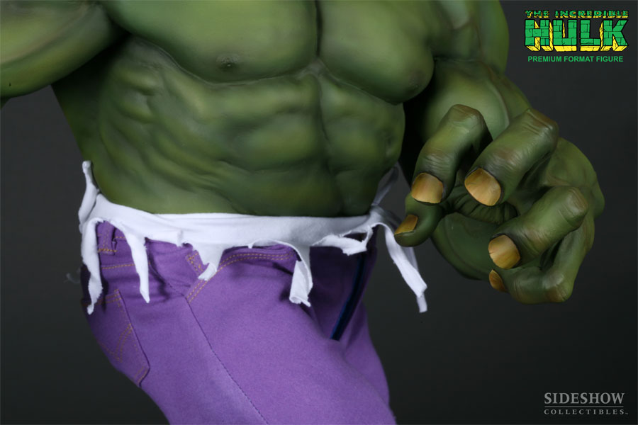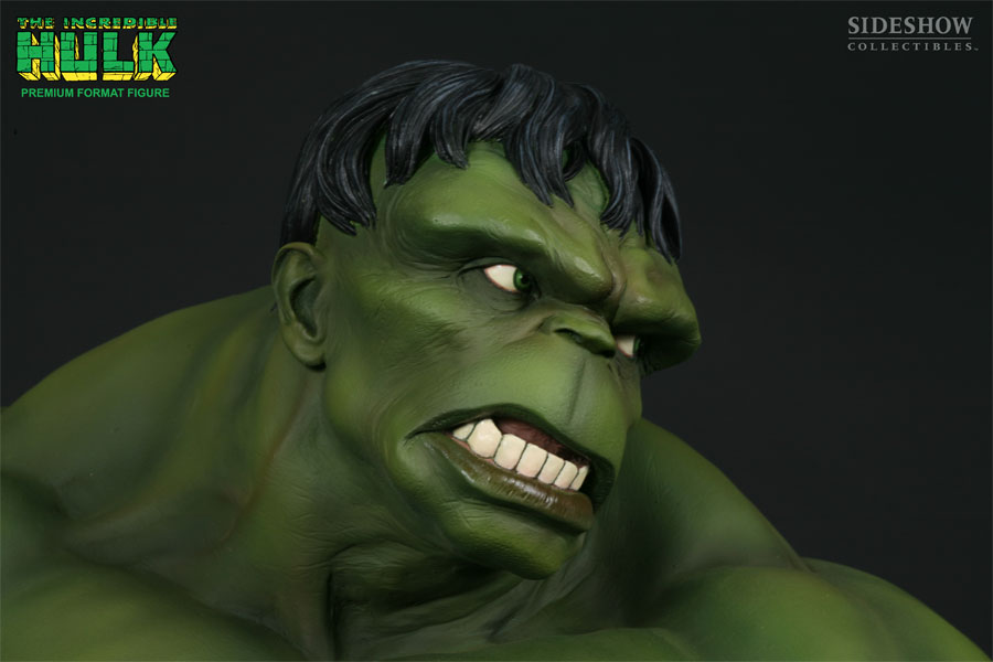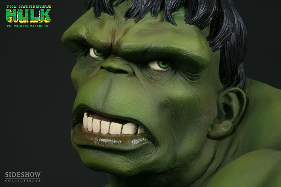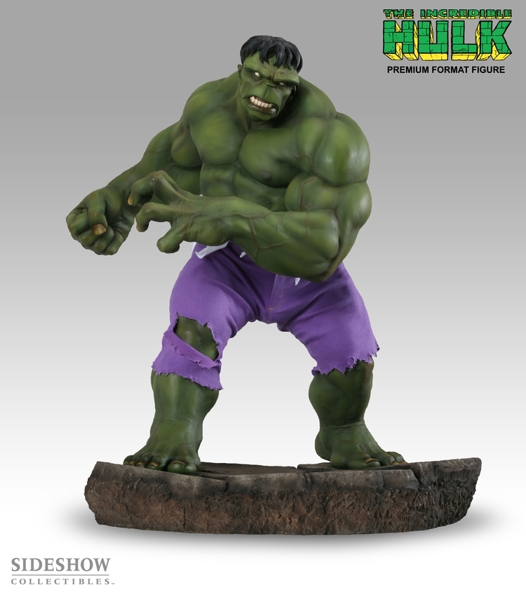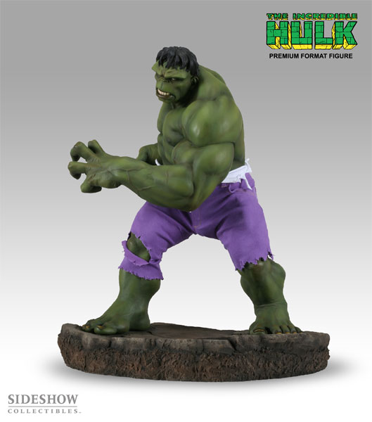Sideshow Collectibles and Marvel Comics are proud to present the Premium Format figure of the Incredible Hulk! Sculpted by Hulk-fan Andy Bergholtz, the Premium Format Incredible Hulk is a fitting tribute to the original Jack Kirby design, with monstrously oversized hands, feet, and musculature. Hulk will dominate any display with his massive size, standing over 20 inches tall atop his rubble base. The Hulk is cast in high-quality polystone, hand finished and hand painted to exacting standards, and dressed in a fabric reproduction of the iconic shorts and tattered shirt. Each Hulk is securely packaged in a durable foam interior, ready for shipment. Don’t miss this opportunity to add the biggest, angriest Hulk collectible to your collection !