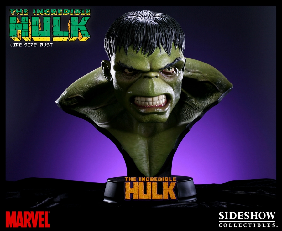 Sideshow Collectibles and Marvel Comics proudly present the latest addition to the Marvel Life-size Bust series: Hulk. Each piece is individually painted and finished to exacting standards, each with its own unique quality and detail that is the trademark of a handcrafted Sideshow Collectibles product. Capturing the big green behemoth in incredible detail, the Hulk Life-size Bust is the perfect addition to any Incredible Hulk or Marvel collection!