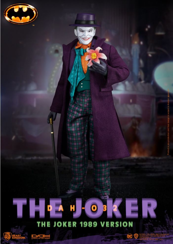Beast Kingdom’s ‘Entertainment Experience Brand’ proudly enters the world of Tim Burton’s Batman with the release of a highly articulable DAH-032 Batman 1989 Joker. An action figure ready for the ultimate in posing possibilities with its 20 points of articulation, the Joker’s diverse yet scary grin is on full display, with two replaceable head sculpts. With attention to detail, every element of the 1989 Joker is recreated using a full-body suit made of real fabric as well as a set of seven replaceable hands. Included in the set are also some of the Joker’s most iconic accessories, such as the flag pistol, megaphone, dentures, and more.
