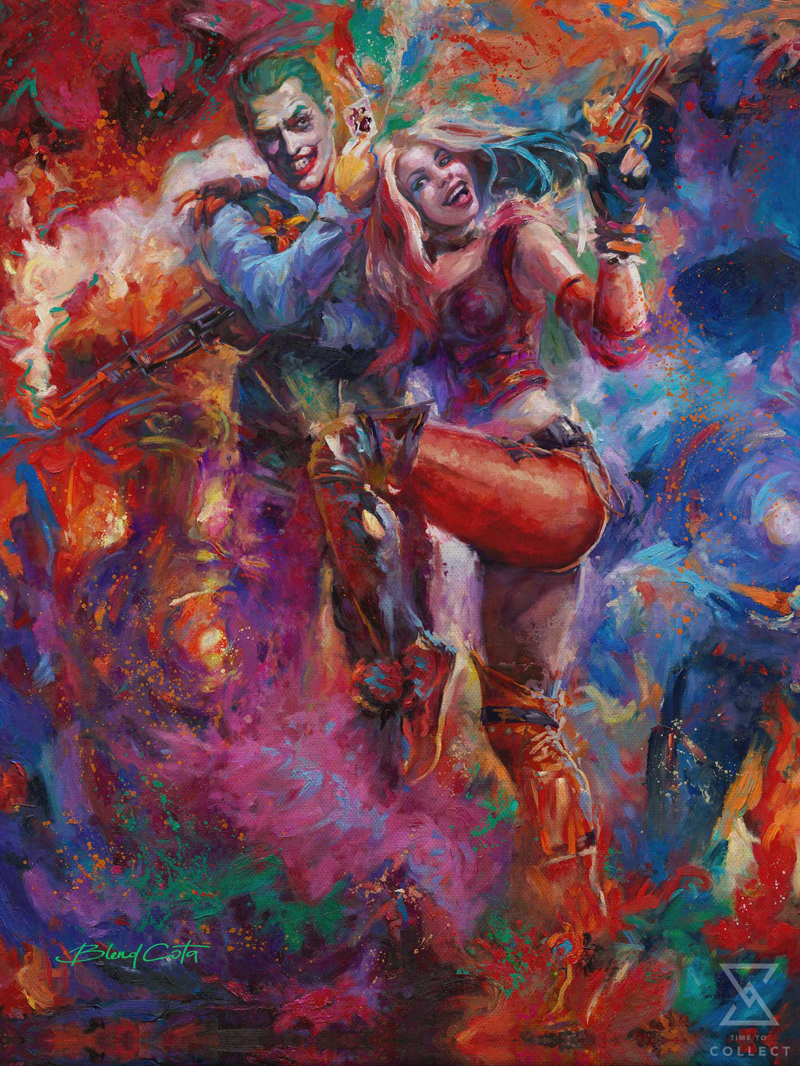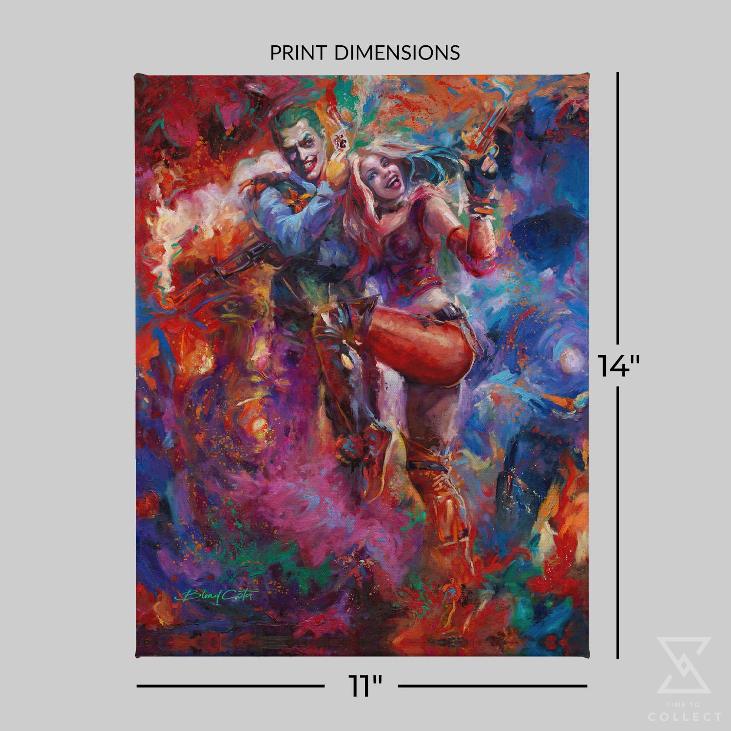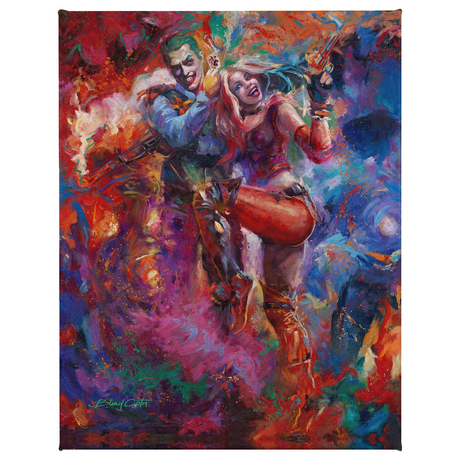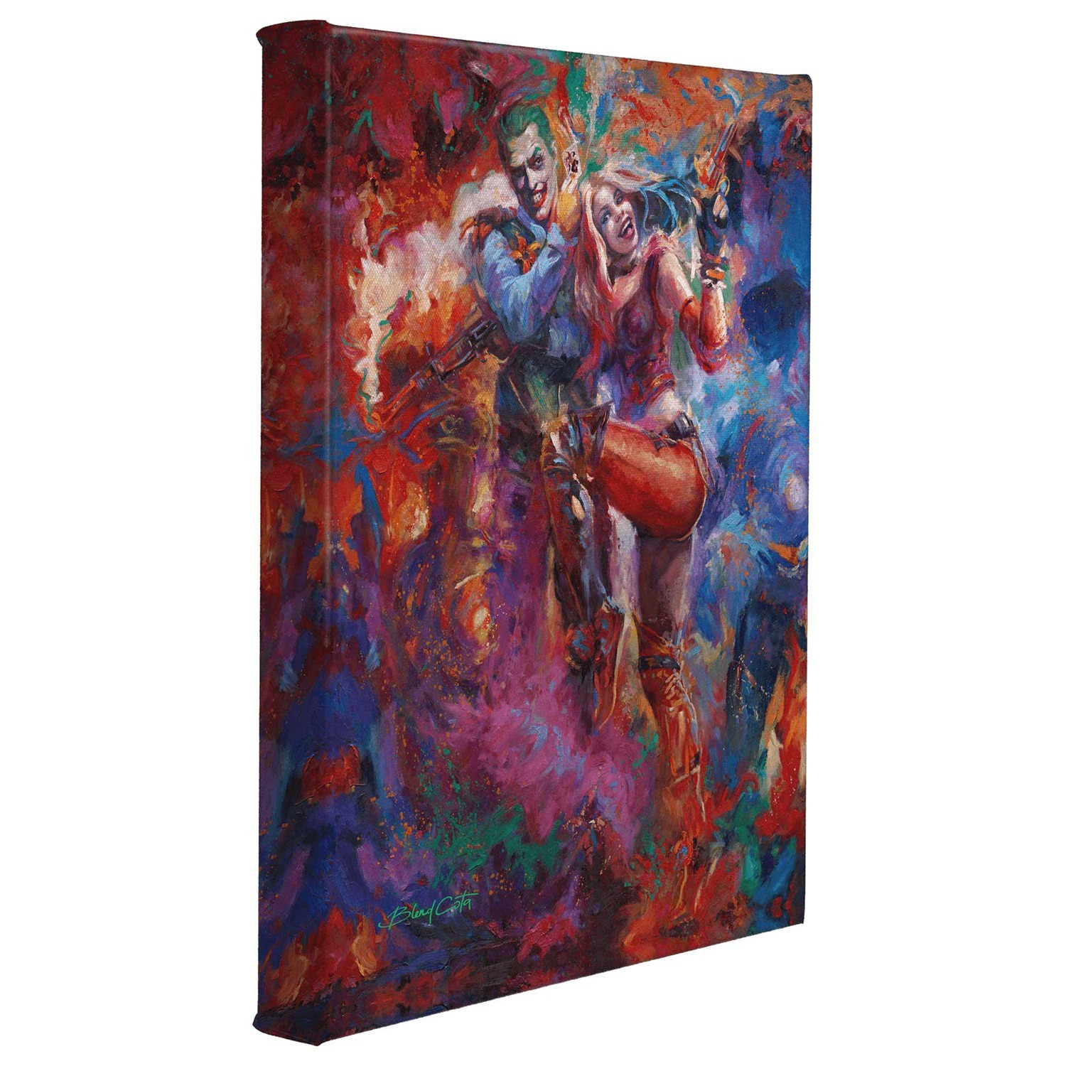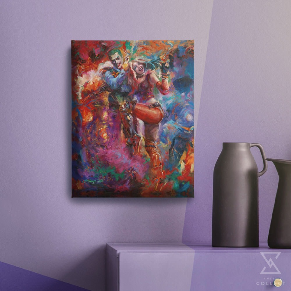The perfect gift for any DC Comics collection, don’t miss your chance to bring home The Joker™ and Harley Quinn™ Canvas Art Print by Blend Cota today!