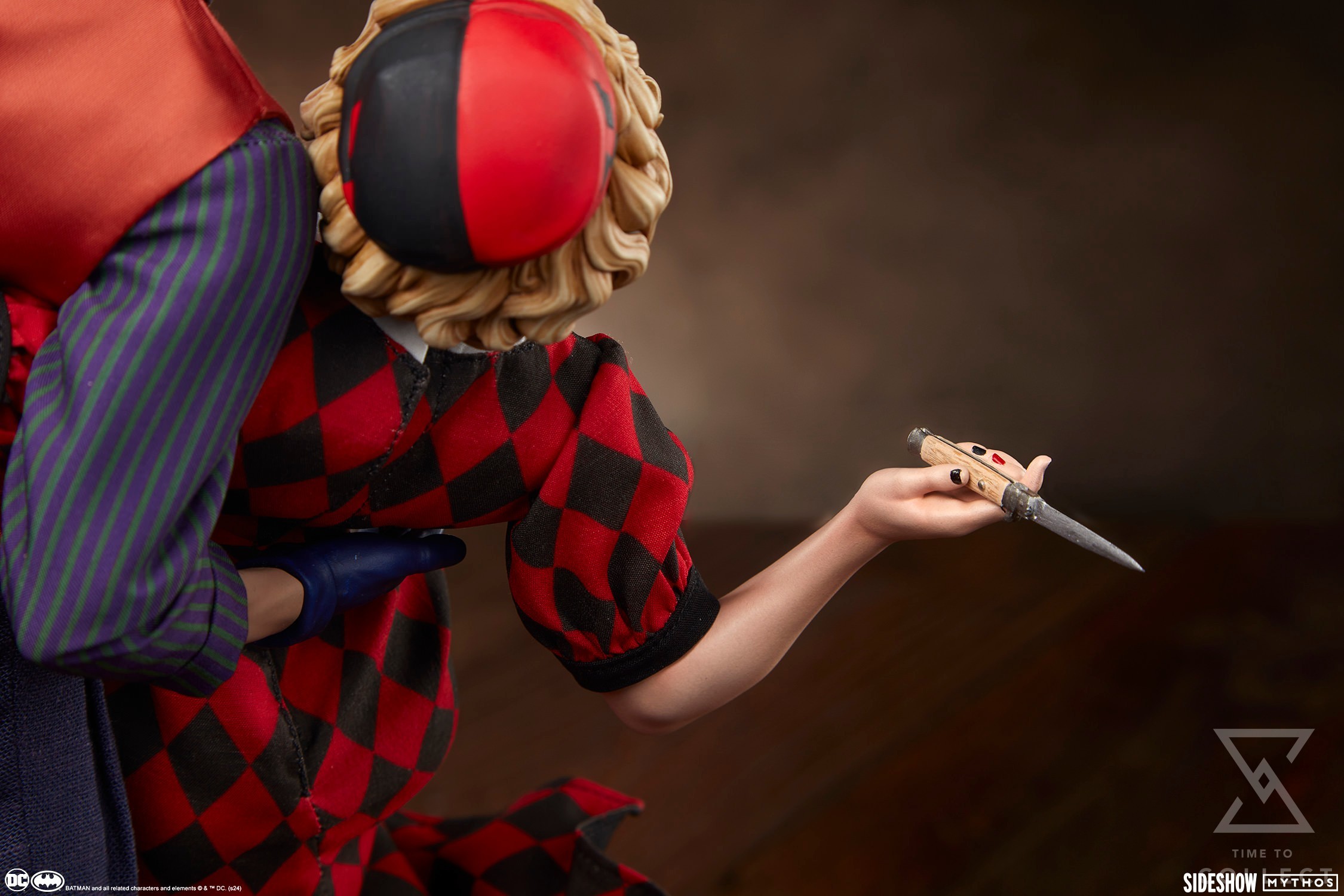 The Joker and Harley Quinn: Lawless Love Diorama finds these two lovers on the lam in their glitzy hideout, the circular base stacked with dynamite, dollar bills, liquor, and stolen money bags. This highly detailed mixed media collectible features polystone elements as well as fabric costuming based on the time period’s distinct fashion. Ever the gentleman, The Joker wears a purple and orange three-piece suit, with purple gloves and a green tie to finish the look. His darling dame sports a diamond-patterned, high-collared dress with a wire in the skirt hem for posing, as well as a matching pill box hat and kitten heels. The 1:5 scale DC statue also includes swap-out hands for each character. Harley’s right hand can be changed to hold either a pistol or knife, while The Joker’s left hand can be alternated between a crowbar and a submachine gun.