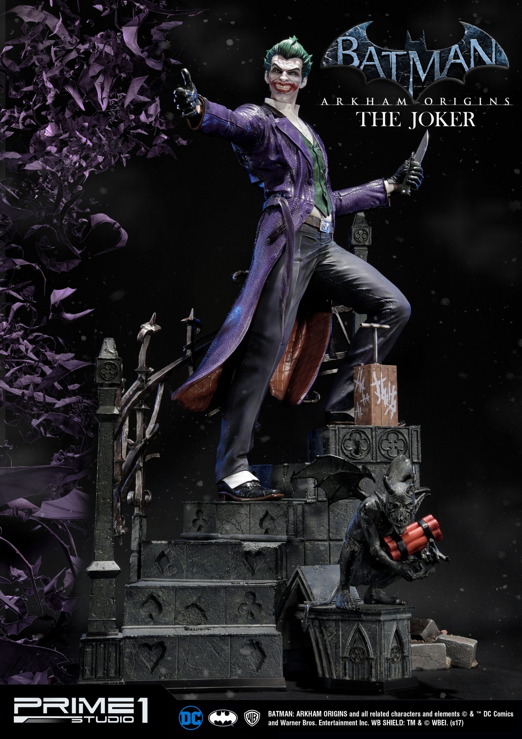 Prime 1 Studio is proud to present MMDC-21: The Joker from Batman: Arkham Origins. The Joker was an insane, homicidal supervillain, and the arch nemesis of Batman. His white skin, green hair and blood red lips belied the chaotic nature that underlay his cartoonish appearance. The extremely intelligent self-styled “”Clown Prince of Crime”” had no superpowers beyond a capacity for incredible violence and a skill at creating deadly mayhem, and frequently concocted elaborate schemes to entrap his nemesis. He serves as the main antagonist of Arkham Origins and Arkham Asylum, is one of the main antagonists of Arkham City, is one of the prominent antagonists of Arkham Knight, and can be considered the central antagonist of the Arkham series overall.