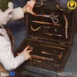 The One:12 Collective The Joker: Gotham by Gaslight is outfitted in a Victorian era-inspired outfit. He wears a dress shirt, necktie, suspenders, and slacks, and an optional leather-like butcher’s apron. A double-breasted overcoat, a scarf, top hat, and tinted glasses are also included to assist The Joker in concealing his identity.