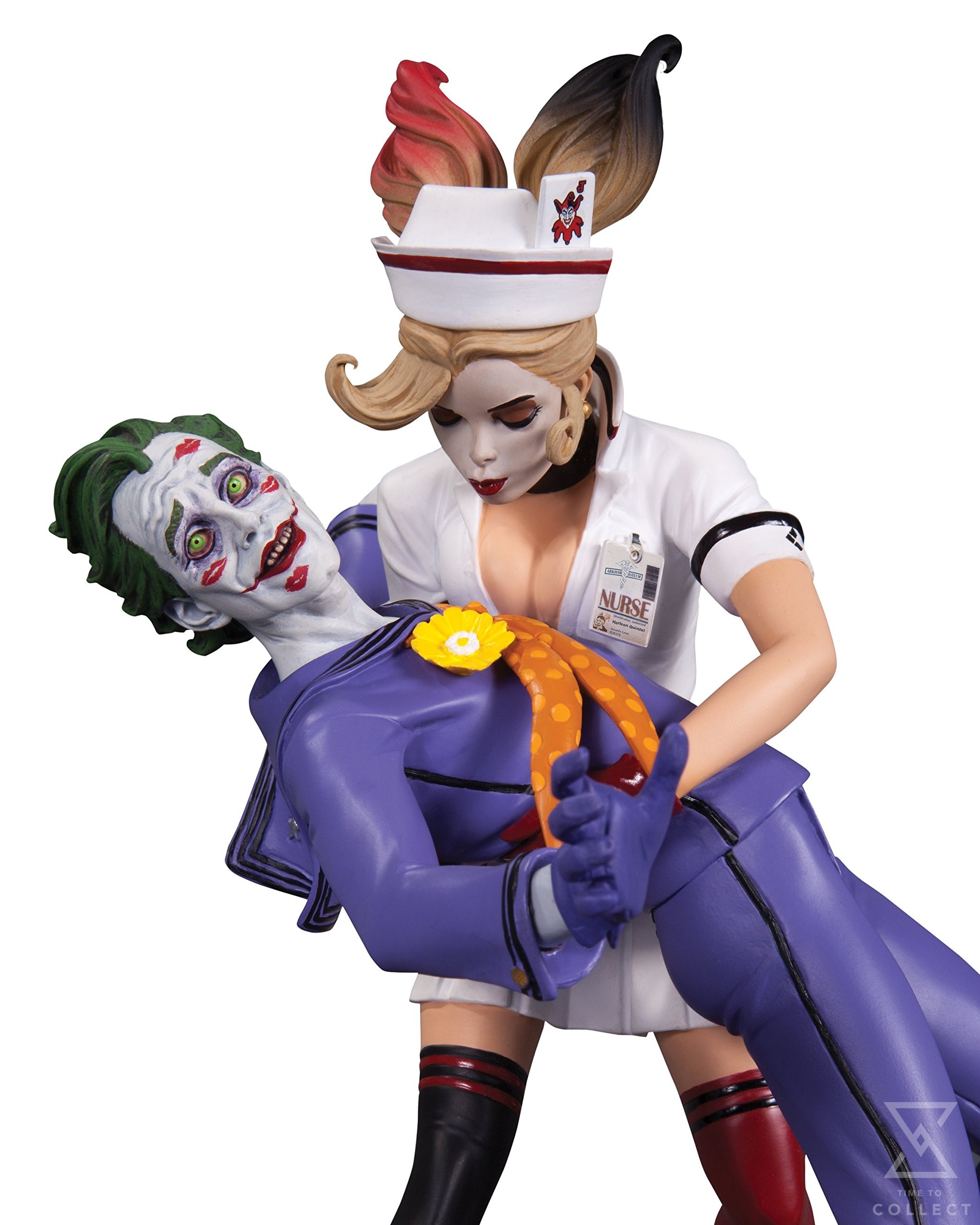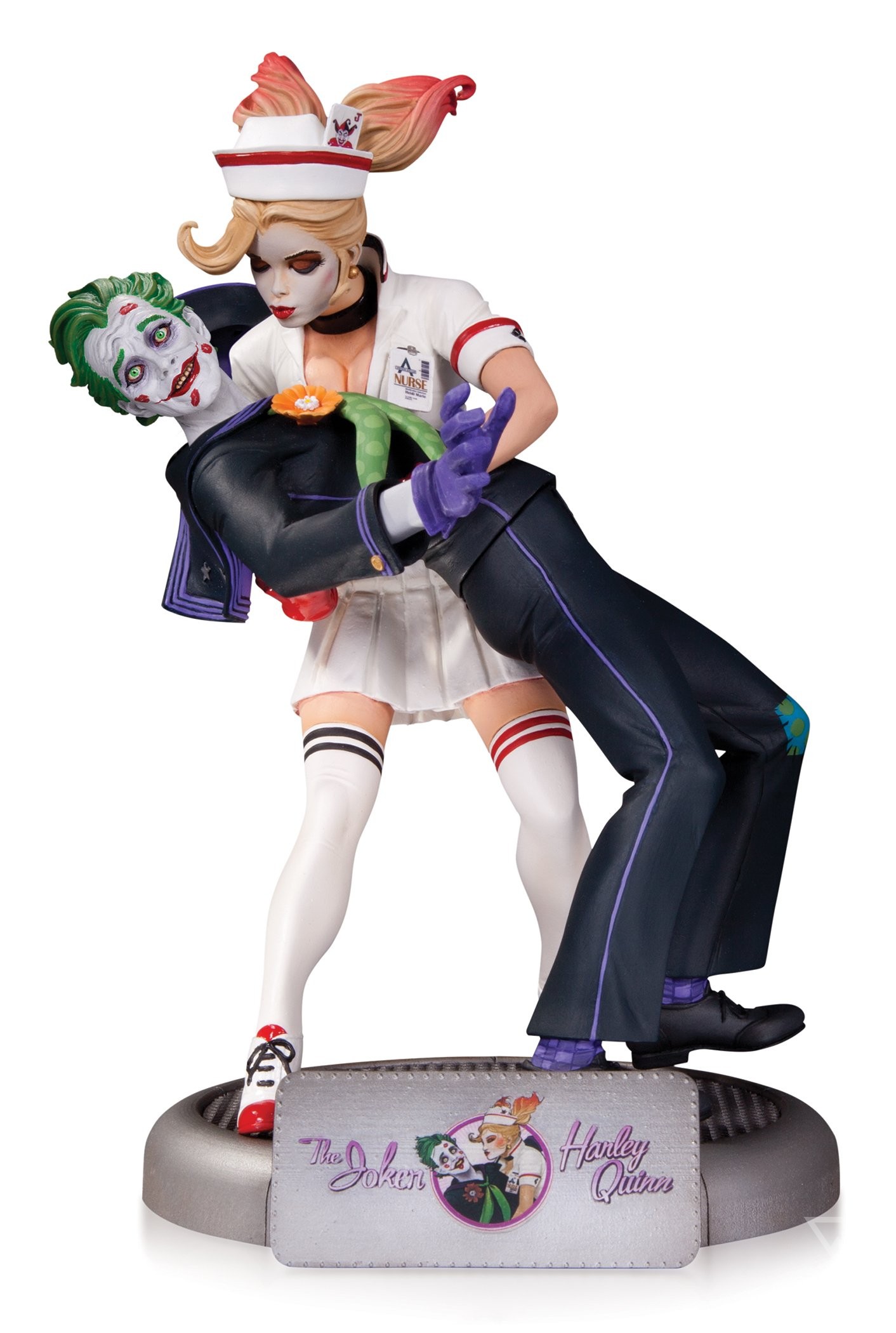Designed by Ant Lucia. Sculpted by Tim Miller. Don’t miss your second chance to get the highly sought after Bombshells Joker and Harley Quinn Statue! Based on the variant cover design from DC Comics! Measures approximately 10″ tall.
