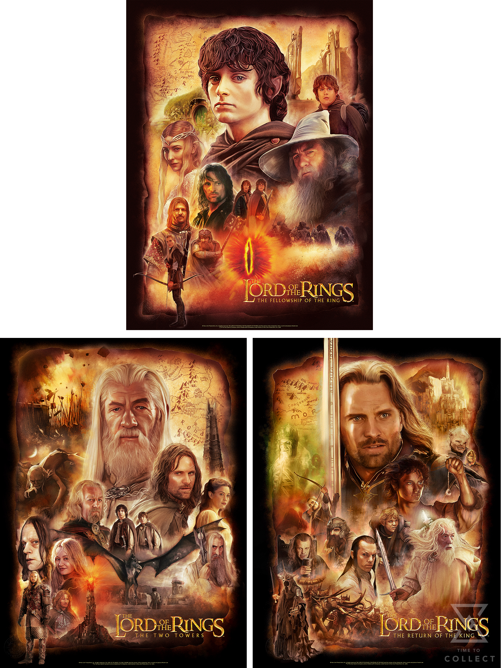 Sideshow Art Prints presents The Lord of the Rings Trilogy Framed Fine Art Print Set, a fantasy art collection featuring three original illustrations by artist Rich Davies, AKA turksworks.