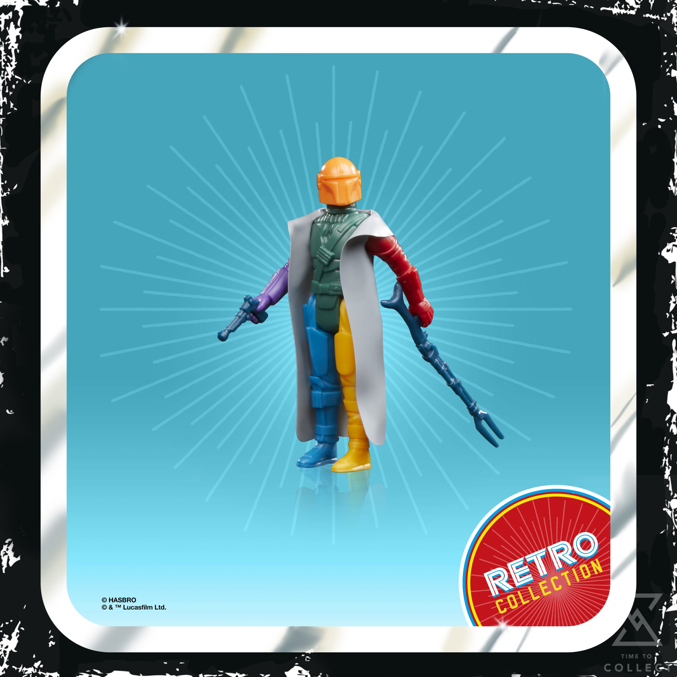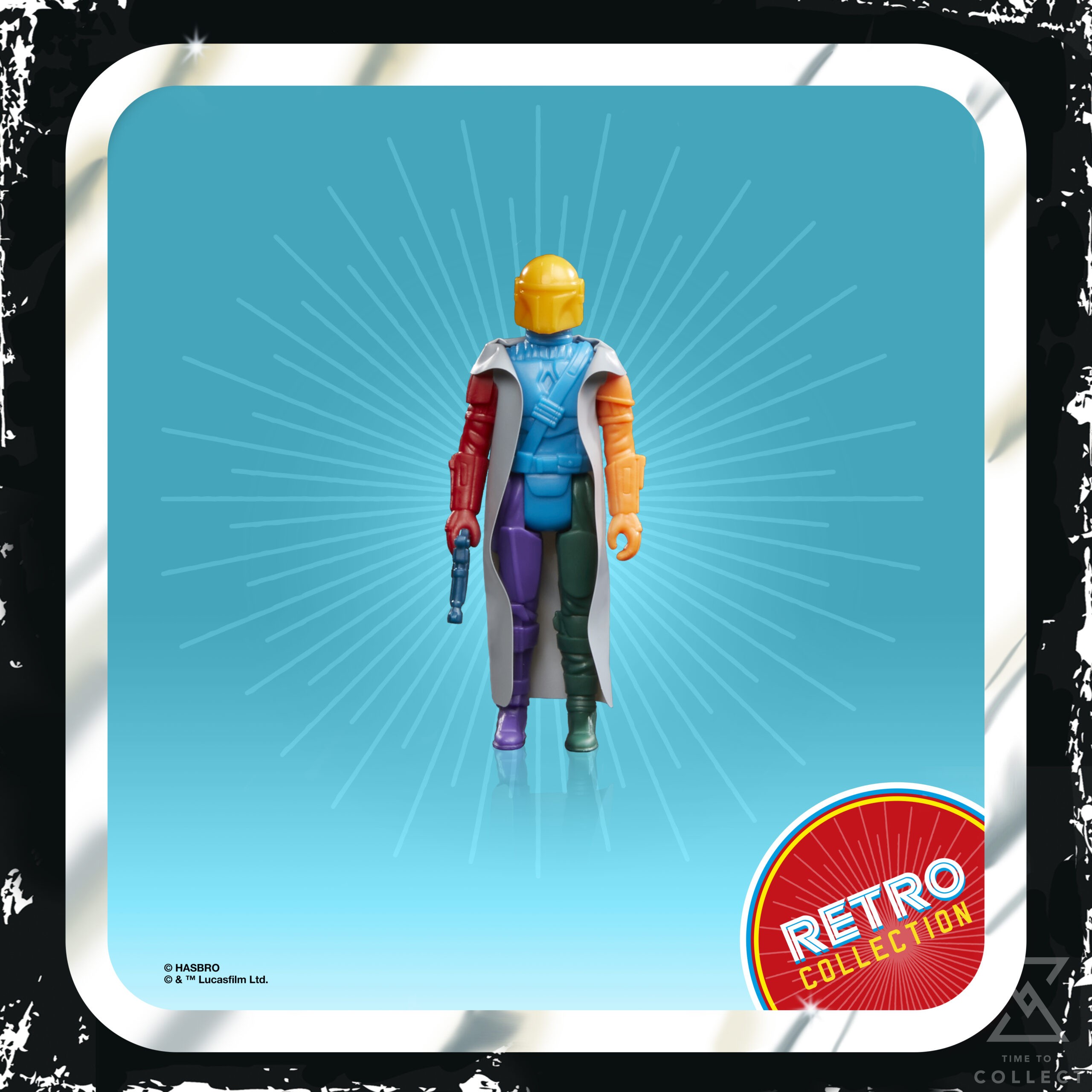 The 3.75-inch-scale Retro Collection figure is detailed to look like The Mandalorian character from The Mandalorian live-action series on Disney+, featuring design and detailing inspired by 1970s Star Wars figures.
