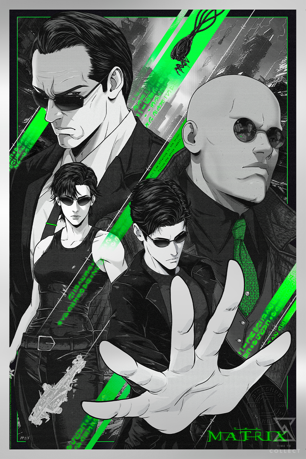 Released in celebration of the 25th anniversary of The Matrix (1999), directed by Lana and Lilly Wachowski, this sci-fi art is now available to fans as an unframed silver metallic giclée print or in a custom framed presentation. Each The Matrix Variant Fine Art Print features an embossed Sideshow Seal of Authenticity as part of the limited edition of only 100 pieces.