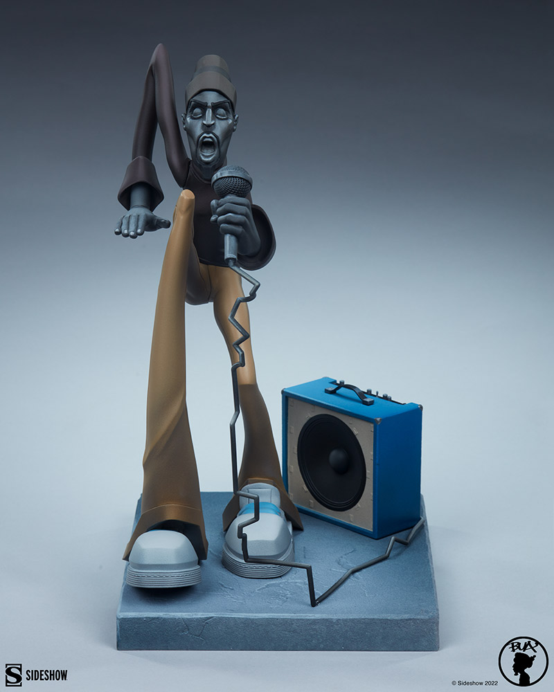 The MC Statue measures 11.5” tall and 7.5″ wide as the intrepid entertainer rocks the microphone, spitting rhymes and stepping to the beat of his stereo system. This fully sculpted collectible utilizes a unique forced perspective sculpt and dynamic paint applications to bring BUA’s original illustration to life. As the Master of Ceremonies, The MC stands front and center as a tribute to those Hip Hop wordsmiths who captivate the crowds with lyrical creativity, adaptability, and unwavering energy.