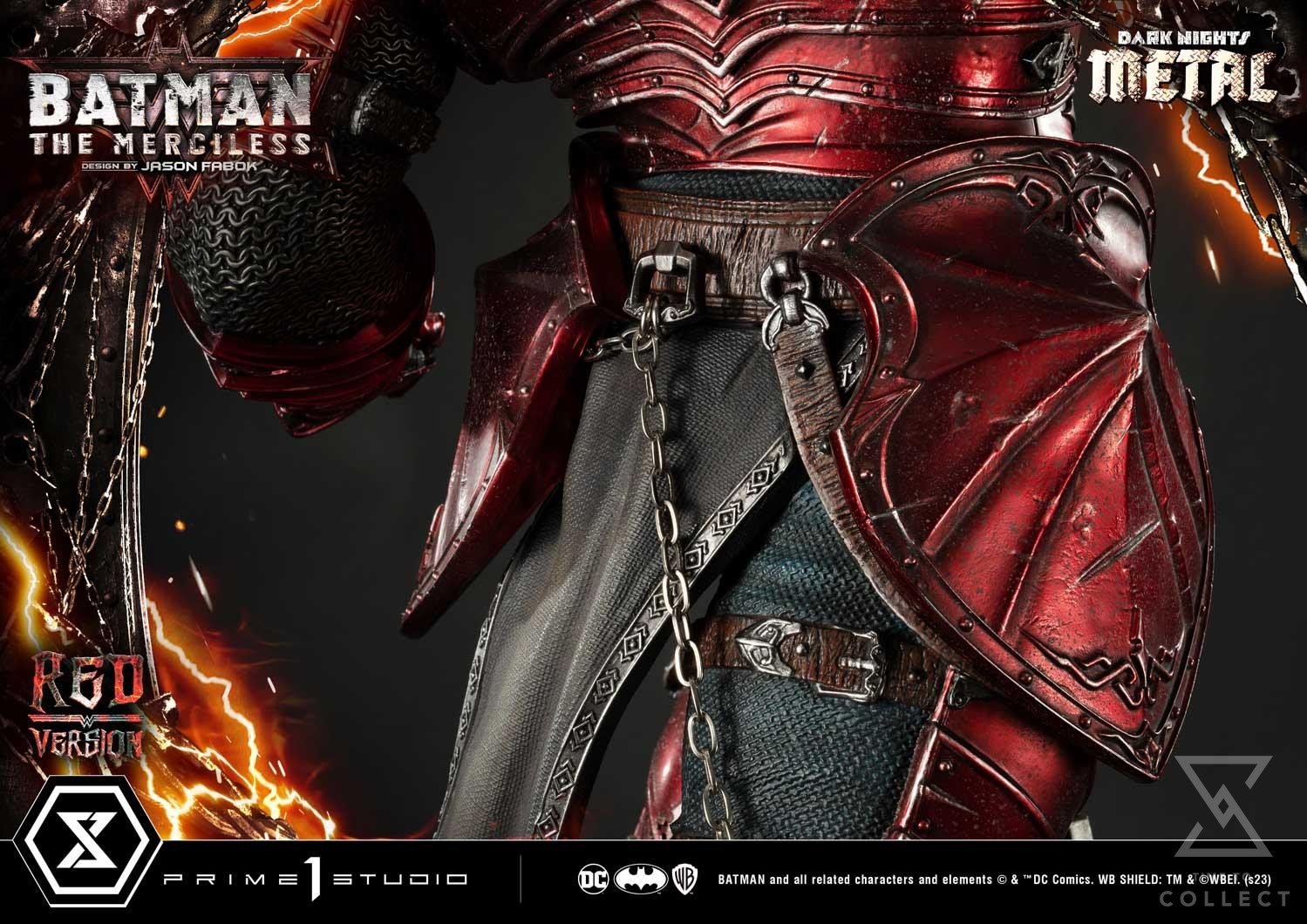 I look at him and see the man I used to be. He fights with mercy. With restraint. Which is why he’ll lose. And this world will fall to Barbatos.” Prime 1 Studio is proud to present the latest addition to the Museum Masterline DC Dark Nights: Metal Series! The 1:3 Scale MMDCMT-04RD: THE MERCILESS RED VERSION from BATMAN DARK NIGHTS: METAL! Offered once before, Prime 1 Studio is back with a new, breathtaking variant on The Merciless! Bruce Wayne is at it again as the corrupted version of Ares, the God of War. Batman has utilized Ares’ new helmet to become all-powerful and devoid of mercy! Prime 1 Studio’s skillful artisans have portrayed The Merciless in a triumphant pose, standing on a molten lava-themed base featuring gargoyle sculptures and a weathered façade. Stretching up at over 44 inches tall, The Merciless looks fantastic, covered in the magical armor created through the power of Ares, The God of War. The Merciless’ armor itself, shines brightly with its scarlet hue, calling to mind the blood-soaked conquest of his world, Earth -12. Rendered with stunning scrollwork, battle damage, and realistic weathering, this metallic red armor is a sight to behold! The Merciless will come with three (3) different heads that offer different options for continued display. Limited to only 100 pieces, The Merciless Red Version is a rare collectible that is sure to sell out fast! Complete your ever-growing Dark Nights: Metal statue collection with the breathtaking MMDCMT-04RD The Merciless Red Version from the Dark Nights: Metal!