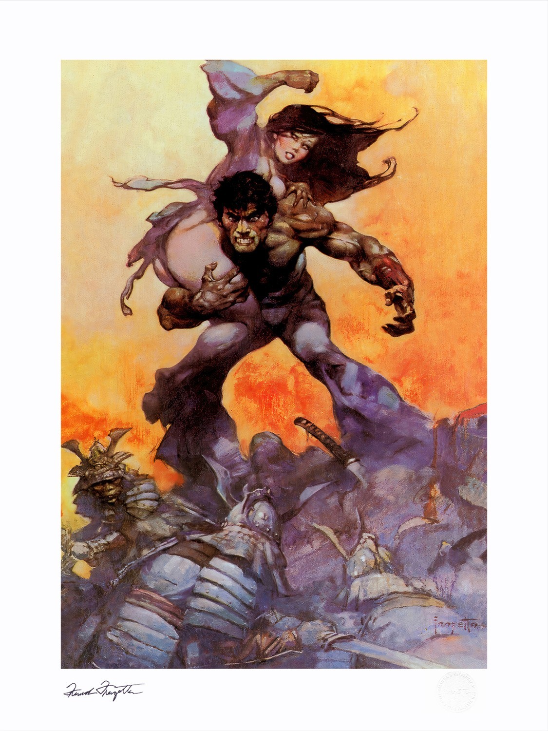 - Hand stamped authorized signature of artist, Frank Frazetta