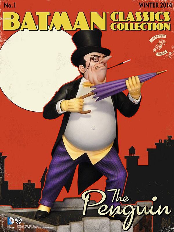 Sideshow Collectibles and Tweeterhead are excited to present the first release in the BATMAN Classic Collection: the Classic Penguin Maquette. Inspired by the art of Bob Kane and Dick Sprang, Pengy comes to life in a 1940s style tuxedo with his signature umbrella, planning his next enterprise atop a stone rooftop.