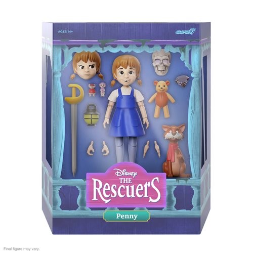 “Please let someone find my bottle!” As seen in Disney The Rescuers, poor Penny’s situation looked dire, but faith makes things turn out right! This 7-inch scale ULTIMATES! figure of Penny features interchangeable heads and hands and multiple accessories including Rufus the cat, her beloved Teddy, the Devil’s Eye diamond, and more. Also included are in-scale versions of Miss Bianca and Bernard! The chance to get this set of figures from Disney The Rescuers will be gone faster than an untrustworthy evil henchman when things start to go awry, so order yours today!