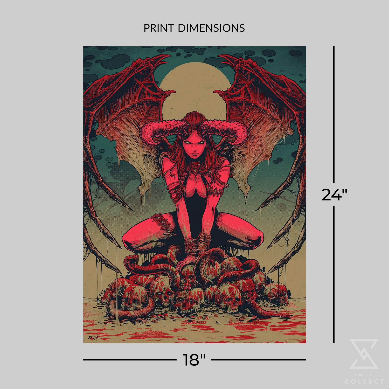 Is your blood pumping now? Dive into her deadly domain and bring home The Succubus Screenprint by Godmachine for your walls today!
