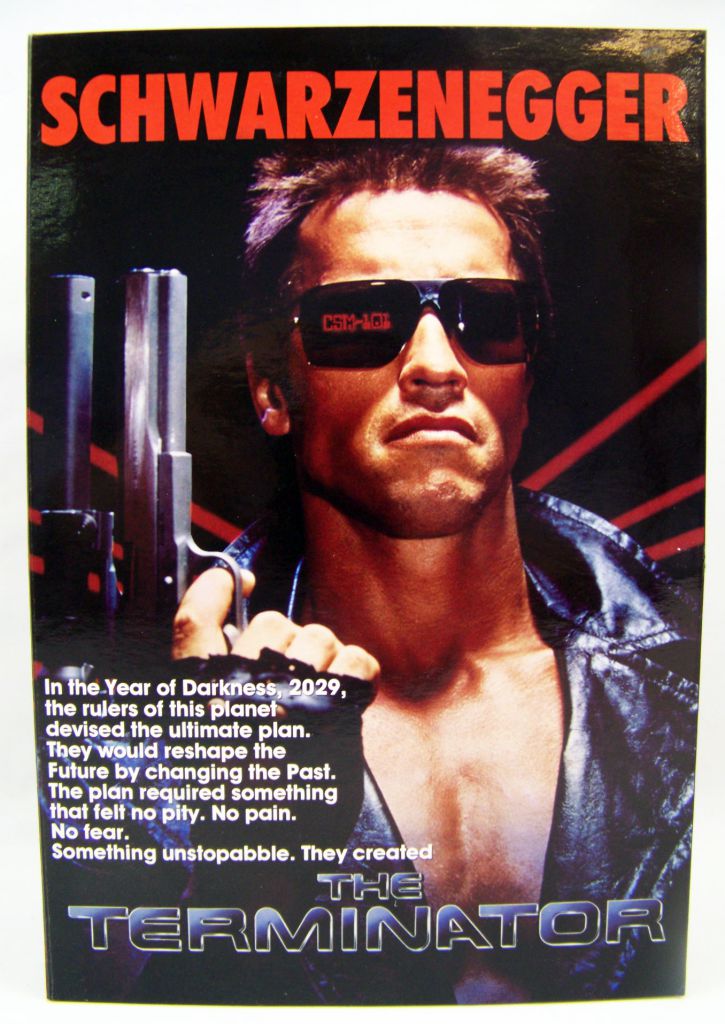 The Ultimate Tech Noir T-800 features that punk outfit with metal jacket chain film and bears the likeness of Arnold Schwarzenegger. The deluxe 7” scale figure has over 25 points of articulation, plus 3 interchangeable heads, interchangeable right forearm, alternate hand, a small arsenal of weaponry, and two surgical tools for post-battle repairs.