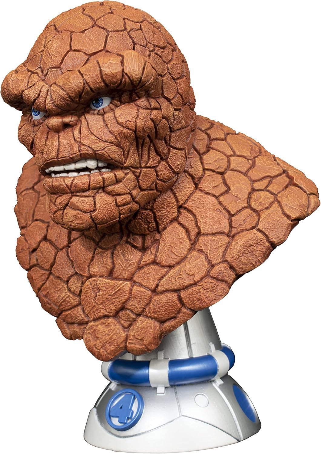 A Diamond Select Toys release! It’s clobberin’ time! The Fantastic Four’s resident rockpile and heart of the team Ben Grimm is now a Legend in 3D! Standing approximately 10 inches tall, this rocky ½ scale bust features detailed sculpting and paint applications and is limited to only 1000 pieces. It comes packaged in a full-color box with a hand-numbered certificate of authenticity. Designed by Joe Allard, sculpted by Rocco Tartamella!